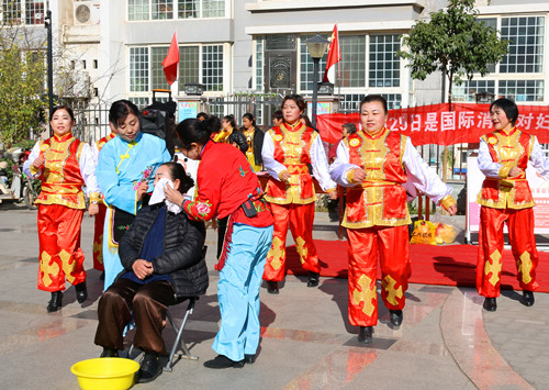 基层巾帼宣传队围绕反家暴宣传主题,自编自导自演,以舞蹈、戏曲、快板、小品等多种形式的节目,为群众们献上一场精彩纷呈的演出。舞蹈《开门红》拉开了演出的序幕,戏曲《清凌凌的水来蓝盈盈的天》《花木兰羞答答施礼拜上》《有为王坐江山非容易》《小仓娃我离了登封小县》活灵活现的翻版了原唱,健身球《兵之歌》、舞蹈《灵灵》、群口快板《两会修宪振人心》催人奋进,风趣幽默的曲剧小品《李豁子离婚》《婆婆也是妈》赢来了阵阵掌声,也让大家进一步体会到和谐家庭的重要性。
