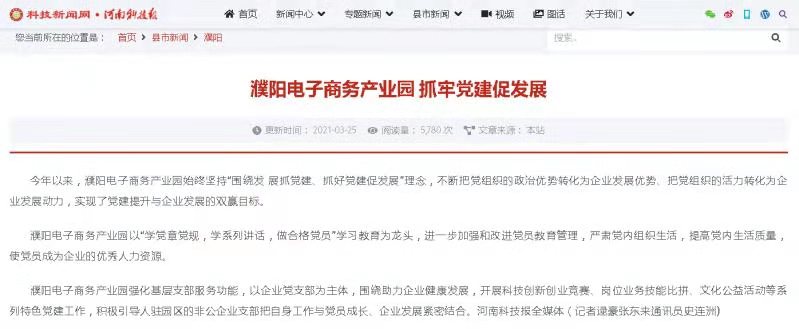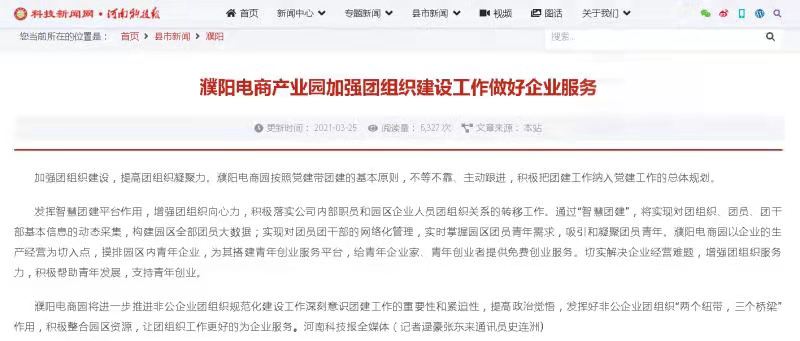 感谢河南科技报对电商园党建团建宣传工作的大力支持,电商园将坚持抓牢党建、加强团建,把党、团组织的政治优势转化为企业发展的不竭动力,为企业做好服务工作。