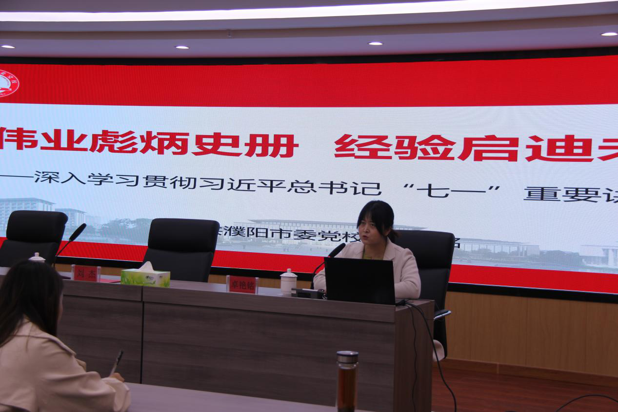 10月25日,电商园组织举办“学习贯彻习近平总书记‘七一’重要讲话精神”报告会,邀请濮阳市委党校青年教师卓艳铭进行宣讲。开发区宣统办副主任施民法,电商园党支部书记、总经理刘杰出席会议,电商园全体员工参加会议。