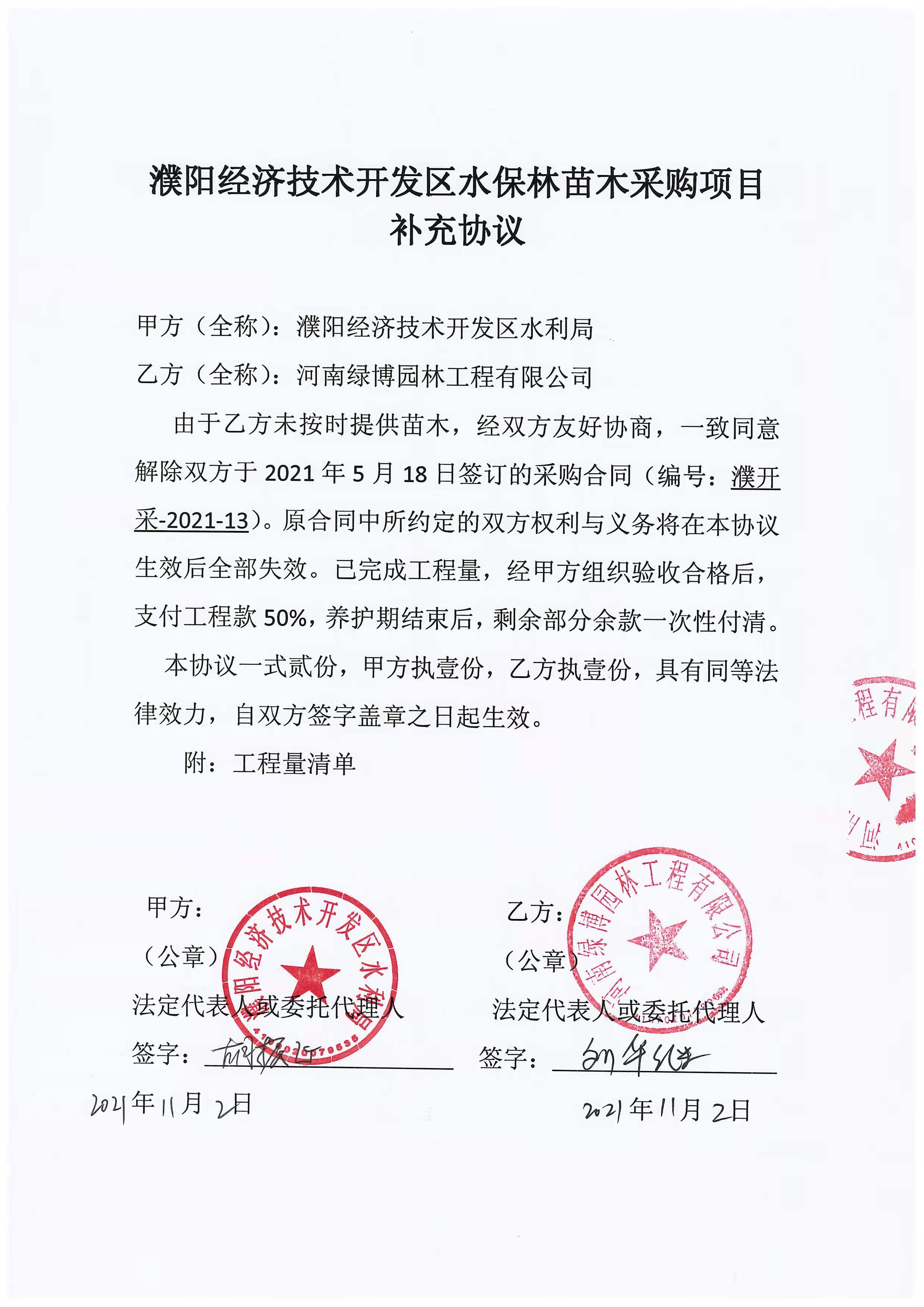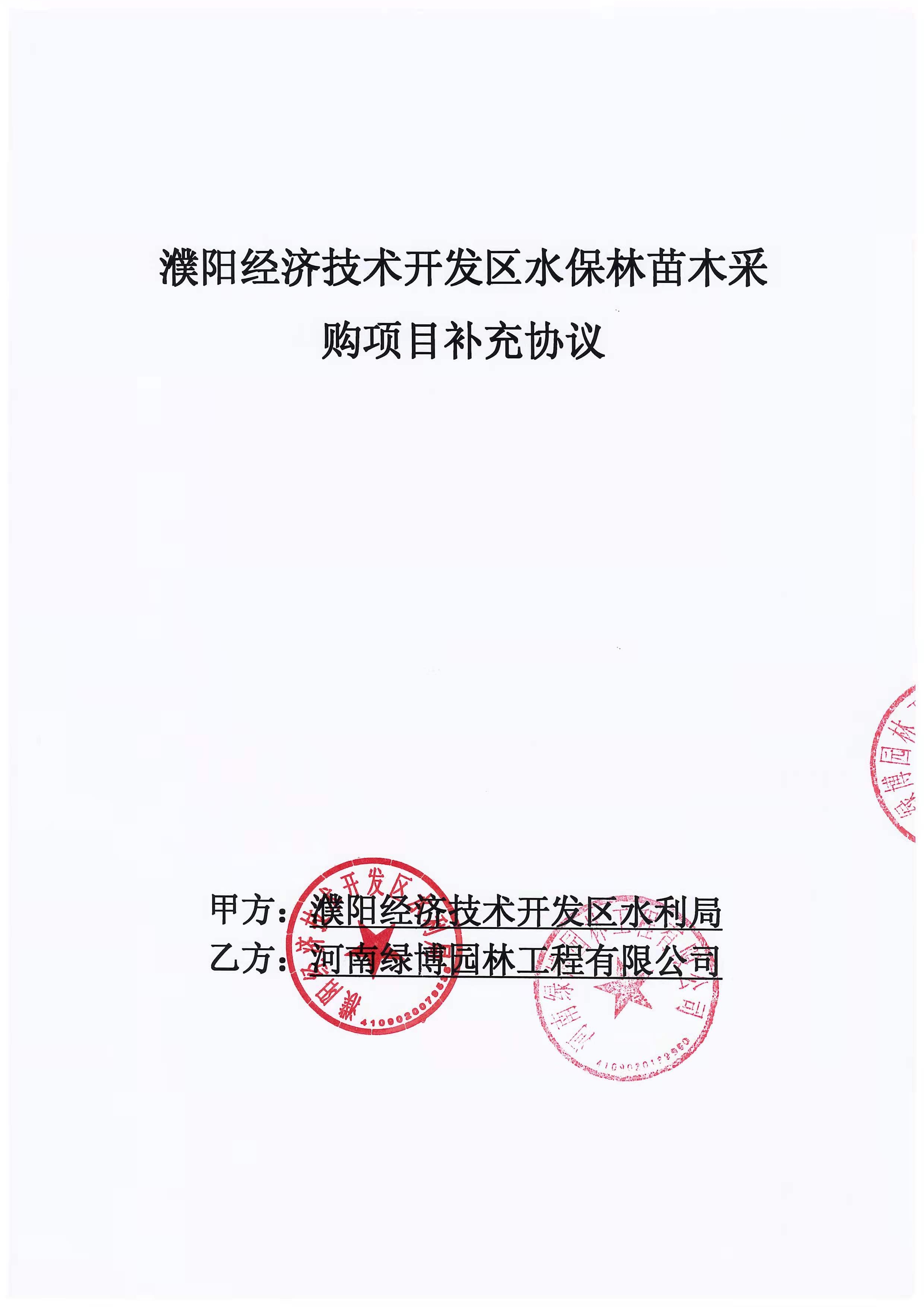 濮阳经济技术开发区水保林苗木采购项目补充协议