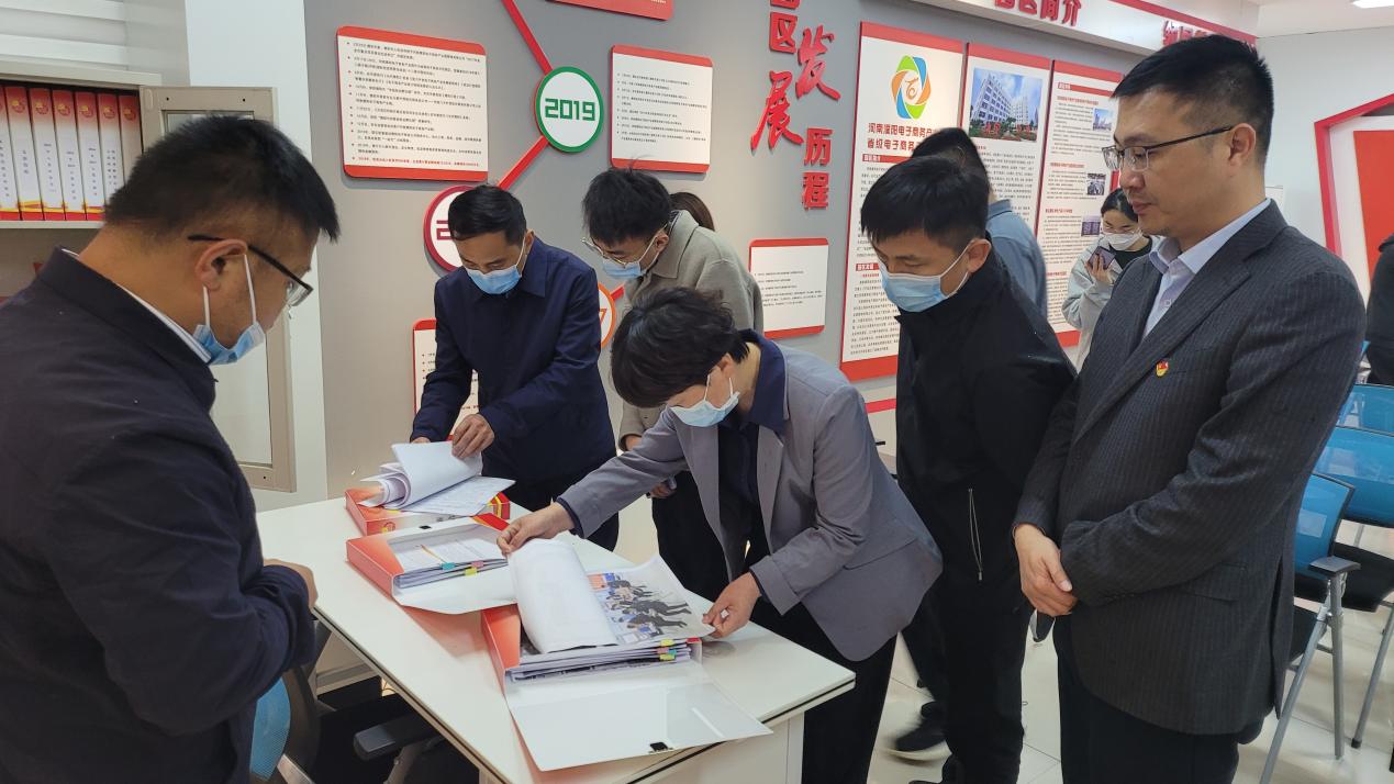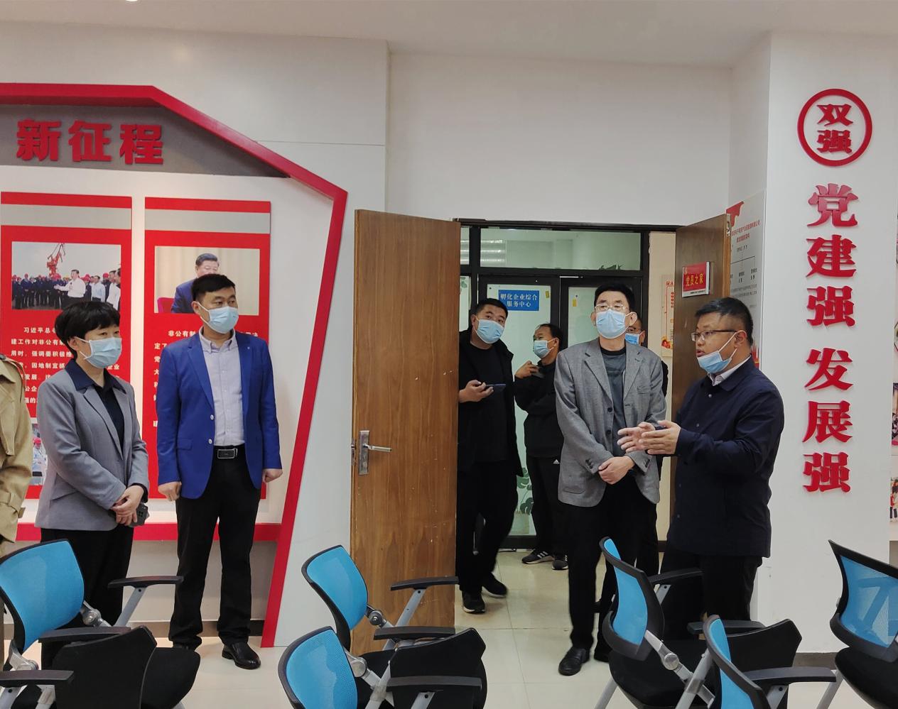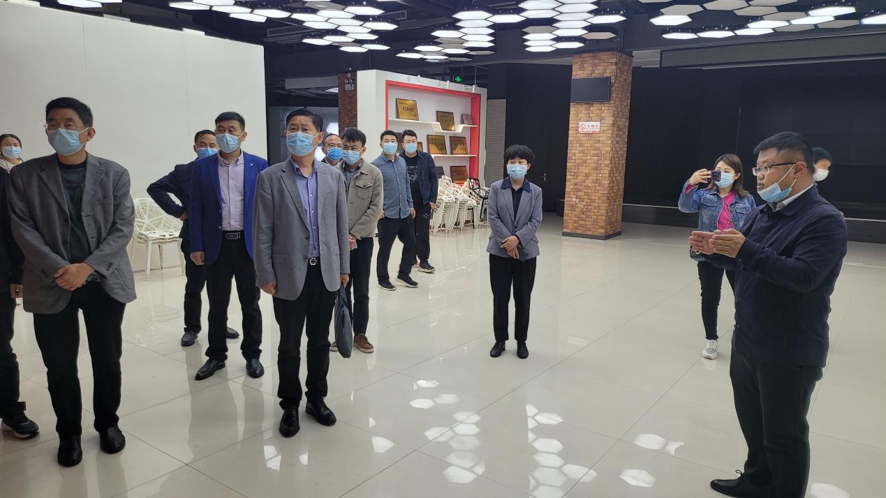领导一行先后参观了园区路演大厅、荣誉墙、党建室。电商园副总经理宋钢豹就园区党建工作、廉洁企业建设工作开展情况进行详细汇报。