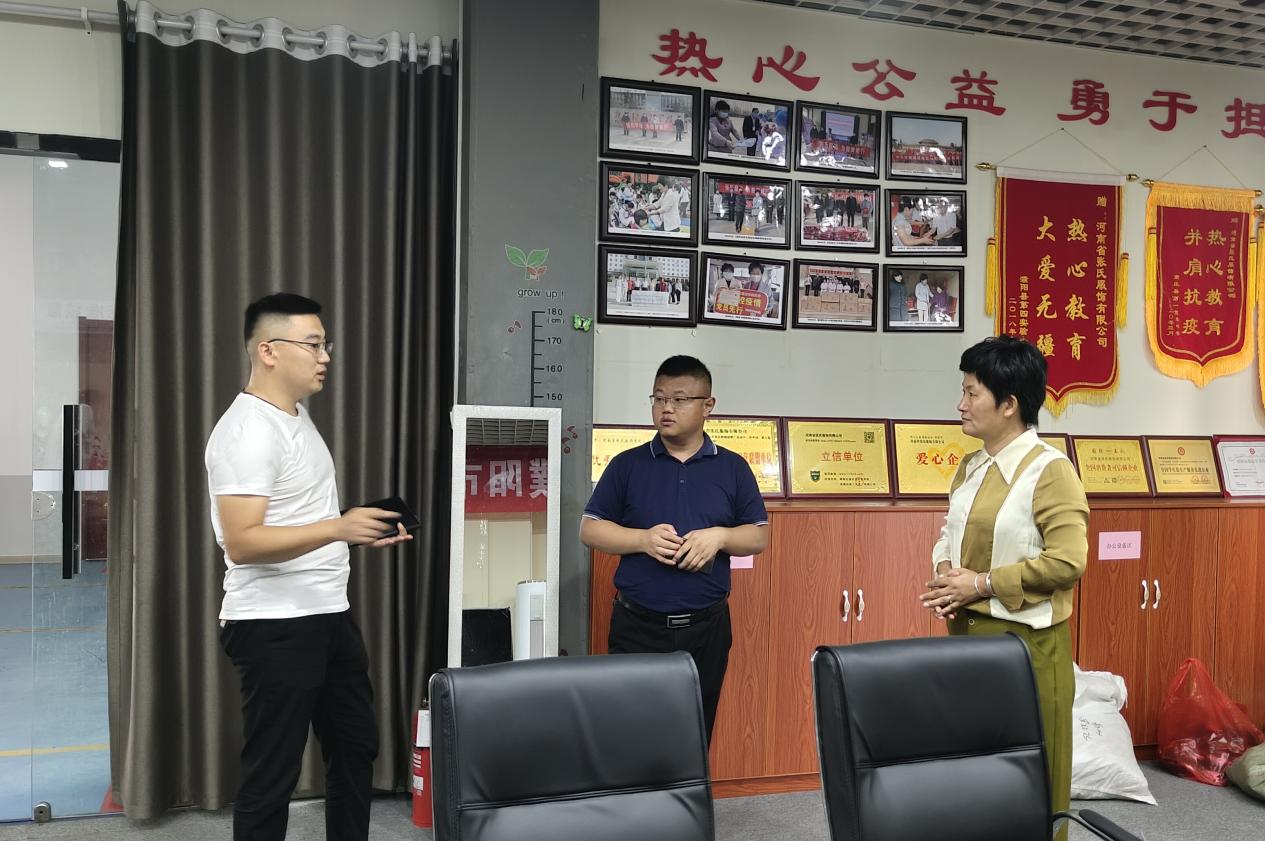 电商园党支部组织委员、副总经理宋钢豹与河南省张氏服饰有限公司负责人就党员发展、活动阵地规划、党组织筹建等方面工作进行交流服务,并沟通协调处理党建孵化工作中的细节问题。