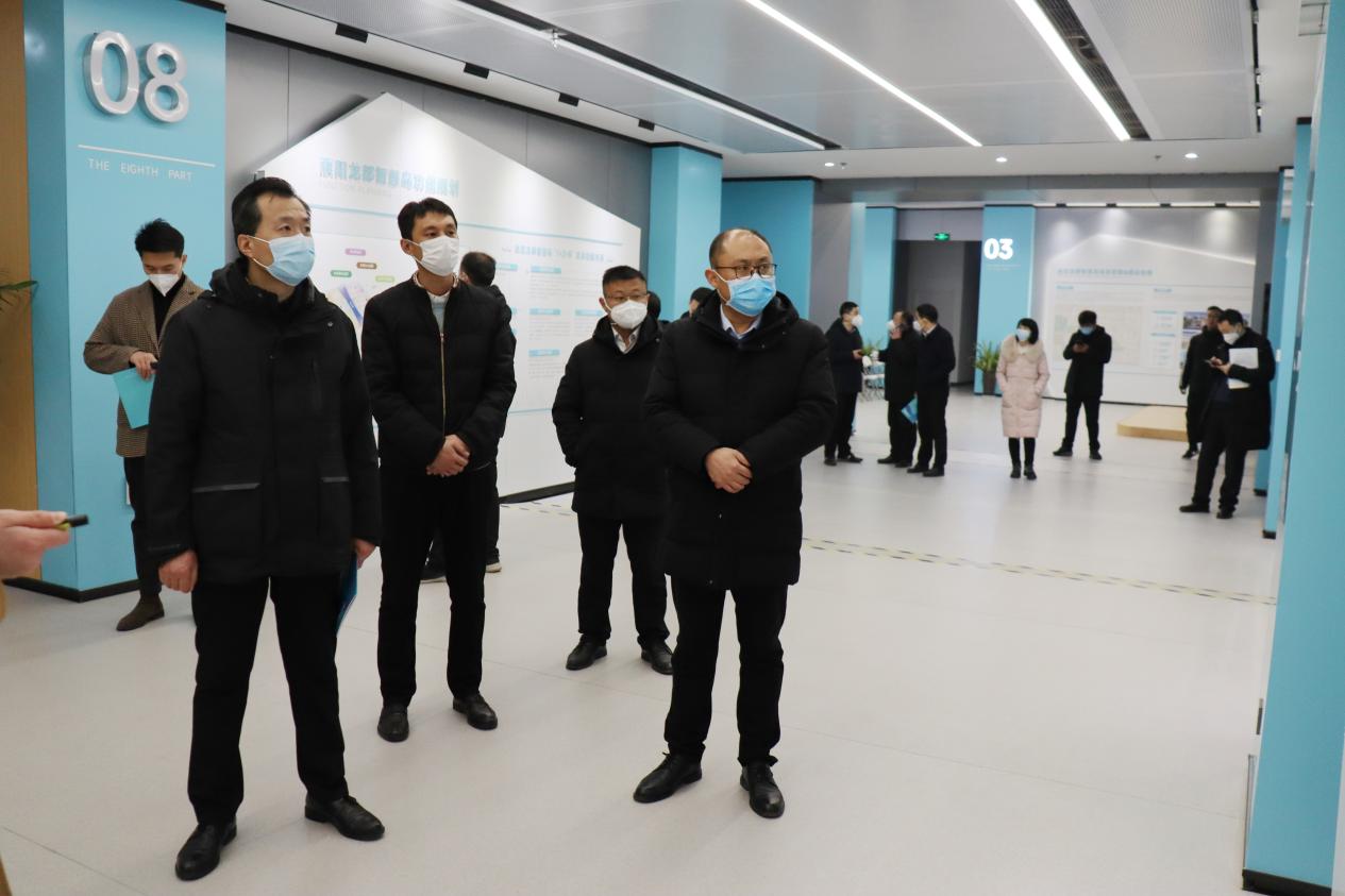 市综合考评组一行实地查看了龙都智慧岛展厅,电商园总经理刘杰就龙都智慧岛项目建设情况、运营模式、发展前景等方面进行详细汇报。