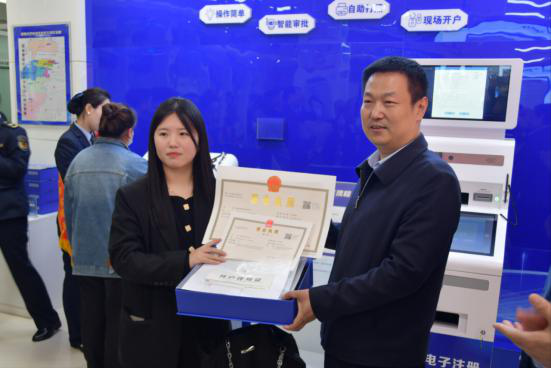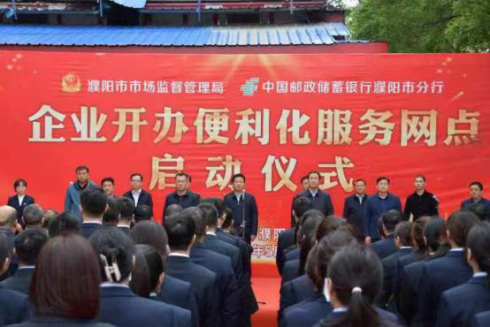 濮阳市举行“企业开办便利化服务网点”启动仪式,标志着全市企业(个体)开办“智能审批+银行开户”工作全面推开。濮阳市政府副市长周锋为“企业开办便利化服务网点”揭牌并为园区企业河南芒克商贸有限公司发放营业执照和基本账户开户信息单。启动仪式由濮阳市人民政府副秘书长张中山主持,濮阳市市场监管局党组书记、局长管红光和邮政储蓄银行濮阳市分行行长谭亮分别致辞,市委营商办等市直单位相关负责同志,全市市场监管系统县(区)局及城区各分局相关负责人,新闻媒体,电商园部分企业代表及工作人员参加启动仪式。