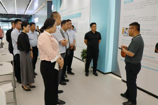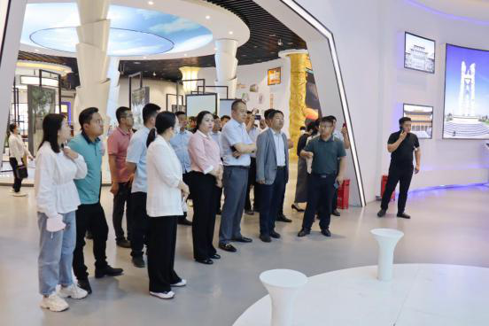 观摩团一行实地参观了园区特色产品展览馆、濮阳龙都智慧岛项目展厅,电商园副总经理宋钢豹就濮阳龙都智慧岛项目的总体规划建设、创新金融体系、科技成果转化、企业孵化培育等相关内容进行详细介绍。