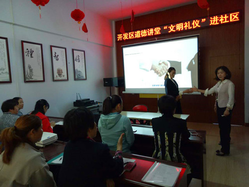 ——开发区开展道德讲堂“文明礼仪”进社区活动