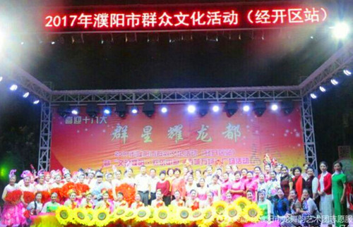 9月17日晚,由濮阳市文广新局主办,区社会事业局承办的“群星耀龙都”2017年濮阳市群众文化活动暨“换了中原文明濮阳百城万场”广场文化活动在安康苑天天乐大舞台举行。演出在舞蹈《东方红》中拉开帷幕,共进行了二胡合奏、双簧表演、二夹弦、古筝合奏、瑜伽、情景歌剧、秧歌等不同形式的节目11个,精彩的节目轮番上演,让观众们大饱眼福。现场吸引了近千人前来观看,内容获得阵阵喝彩,好评如潮。