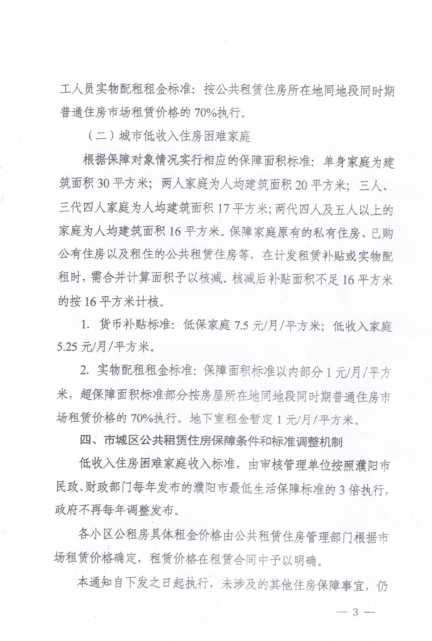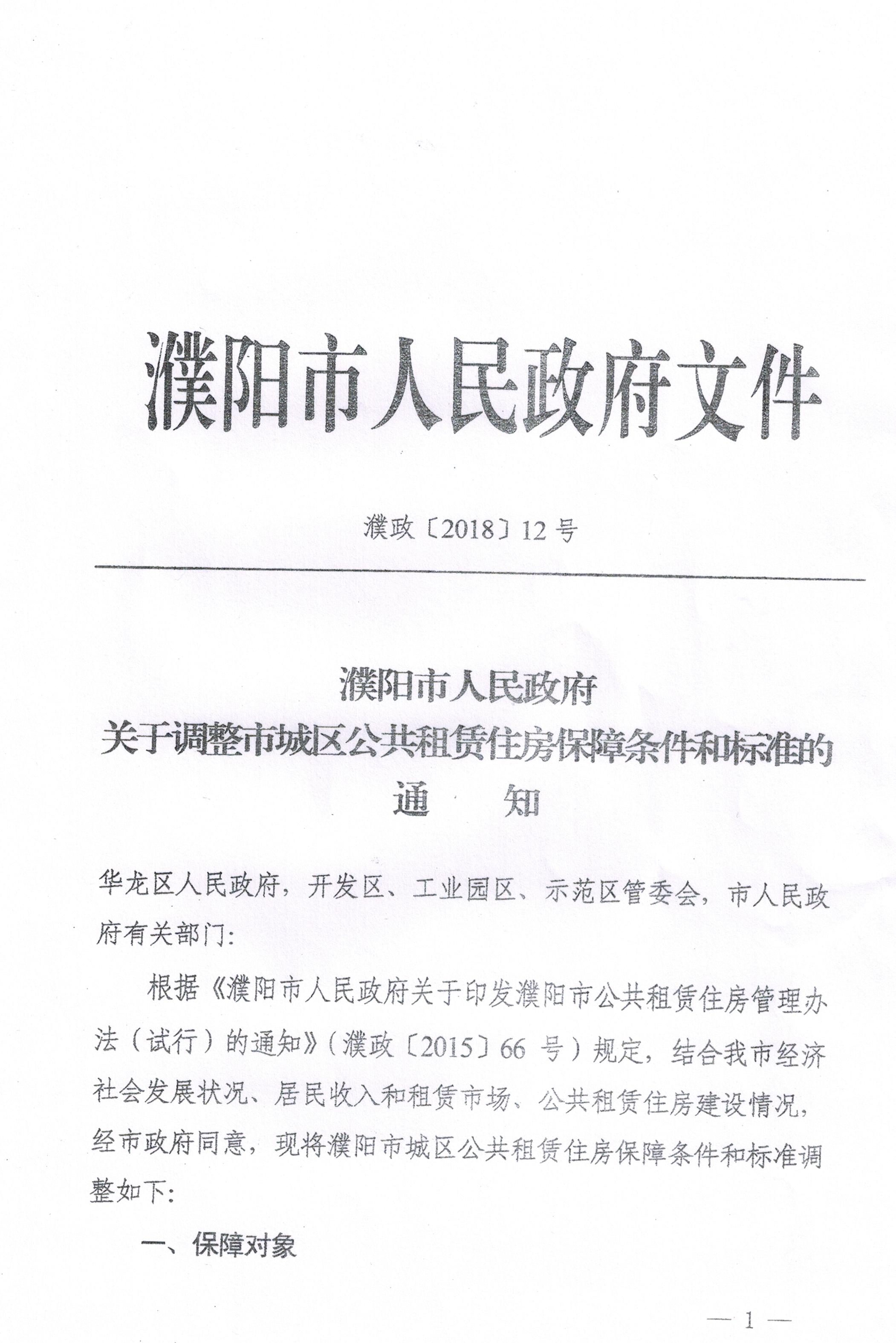 濮阳市人民政府关于调整市城区公共租赁住房保障条件和标准的通知