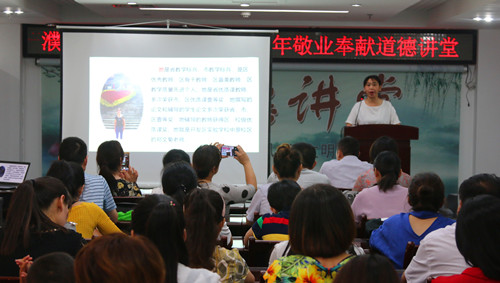 6月22日上午,我区举办2018年敬业奉献道德讲堂,区直各单位代表、各中心校、中小学校长、幼儿园园长及部分教师代表共计80余人参加会议。道德讲堂通过讲述发生在大家身边的好人好事《潜心育人,静心教书》《爱与责任同行》《立足平凡,绽放光彩》《踏实做人,勤奋做事》《爱岗敬业立足平凡,乐于奉献无怨无悔》……他们的事迹真实感人,发人深省,催人奋进,使与会人员受到了深刻的教育和启发。道德讲堂结束后,大家纷纷表示,要以先进模范为榜样,学习他们爱岗敬业、无私奉献的优良品质,身体力行,自觉成为道德的传播者和践行者;学习他们立足本职、争创一流的创新精神,力争在本职岗位上做出新的更大的成绩,为经开区科学发展、赶超发展做出应有的贡献!