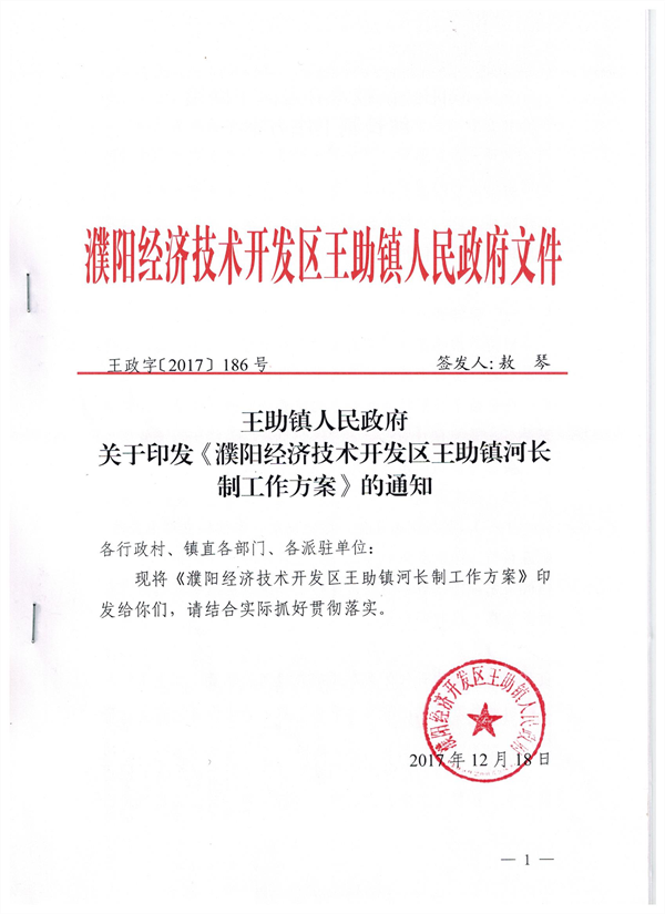 2017年底前,全面建立河长制,在王助镇流域面积3平方公里以上的河流(含湖泊、水库,下同),以及流域面积3平方公里以下、对当地生产生活有重要影响的河流(沟渠)设立河长,统一树立河长制公示牌,各级河长和工作人员责任落实、上岗到位,配合市区建立河长制信息平台。