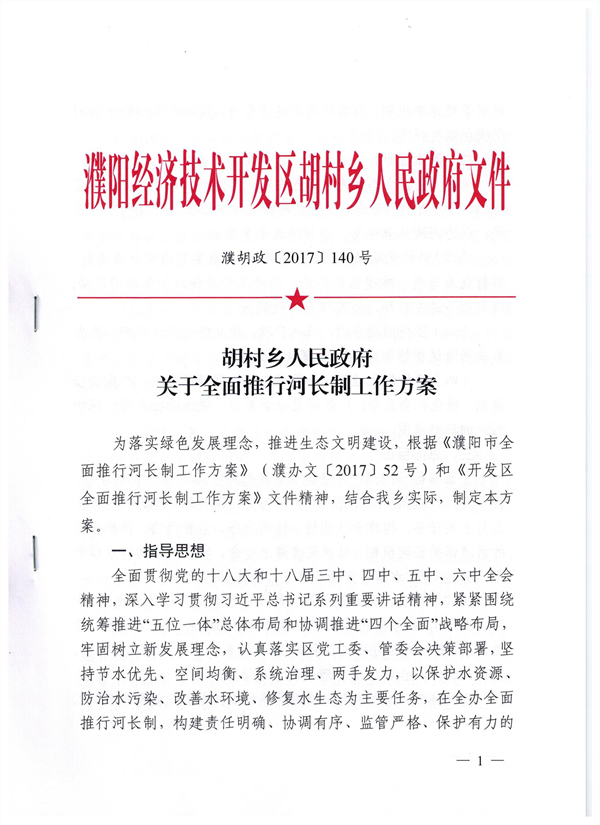 胡村乡全面推行河长制工作方案
