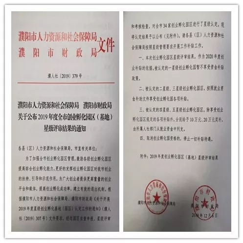 河南濮阳电子商务产业园被市人社局、市财政局评为2019年度五星级孵化园区