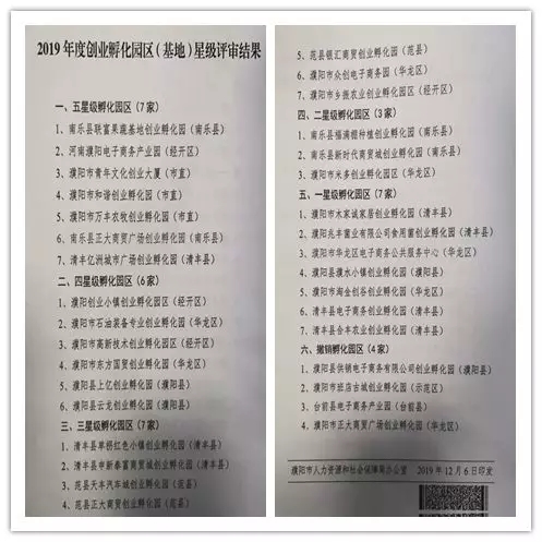 河南濮阳电子商务产业园又传喜讯啦!12月6日,根据濮阳市人力资源和社会保障局、濮阳市财政局《关于开展2019年度星级创业孵化基地(园区)认定工作的通知》(濮人社〔2019〕307号)评选结果公示,河南濮阳电子商务产业园被评审为五星级孵化园区。