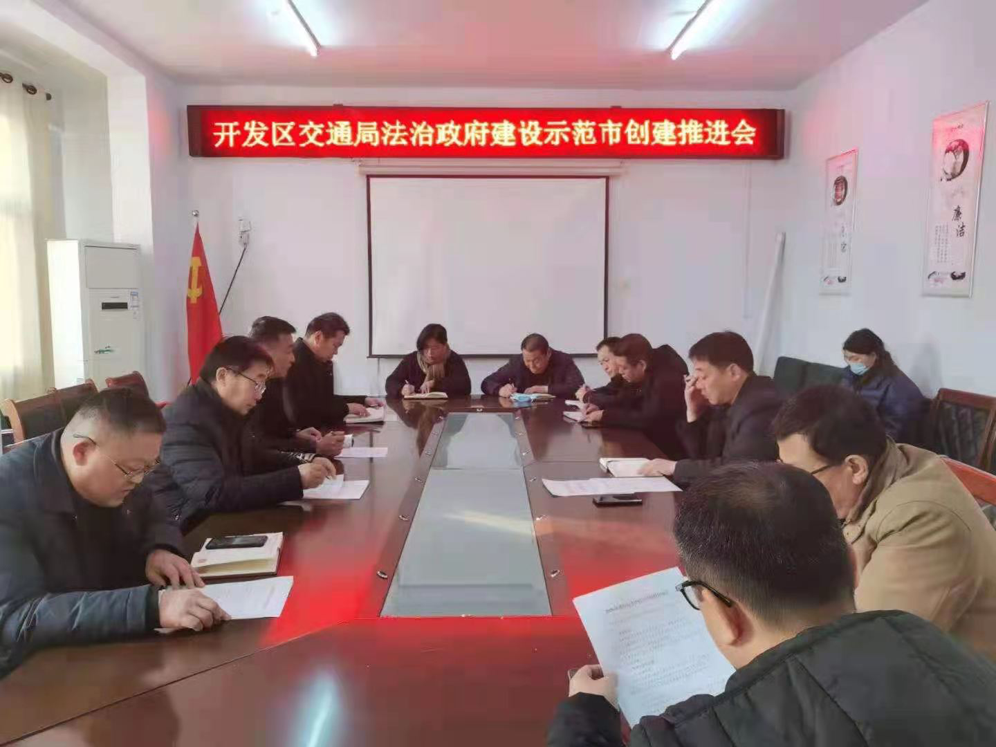 为深入贯彻落实党中央、国务院、省委、省政府、市委、市政府关于法治政府建设的决策部署,深入开展法治政府建设示范市创建活动,在全区营造法治政府建设良好氛围,不断把我区法治政府建设向纵深推进,全面深化交通运输法治政府部门建设,围绕法治政府建设目标,以法治考评为主要抓手,把法治要求贯穿到交通运输规划、建设、管理、运营服务、安全生产的各个领域,努力建成交通运输法治政府部门,为交通运输改革发展提供法治引领和保障。2021年1月12日开发区交通局召开法治政府建设示范市创建推进会。局领导班子、运管局、农村所、局所有科室负责人参加了会议。