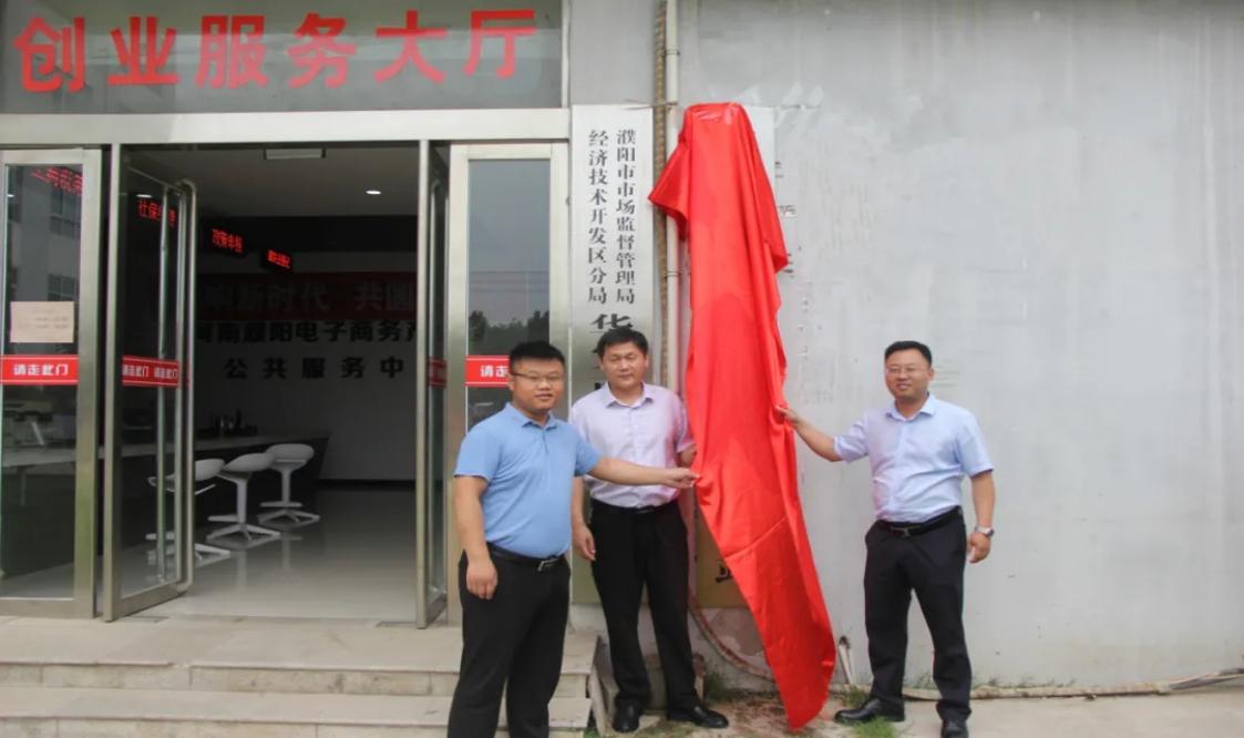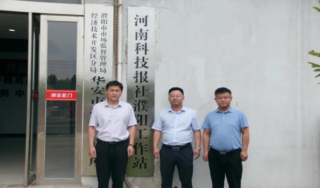 6月10日上午,河南科技报社濮阳工作站在电商园揭牌成立。开发区宣统办副主任施民法,河南科技报社濮阳工作站站长逯豪,电商园副总经理宋钢豹出席揭牌仪式。