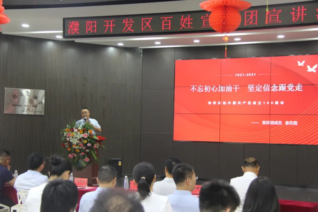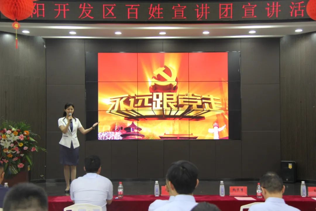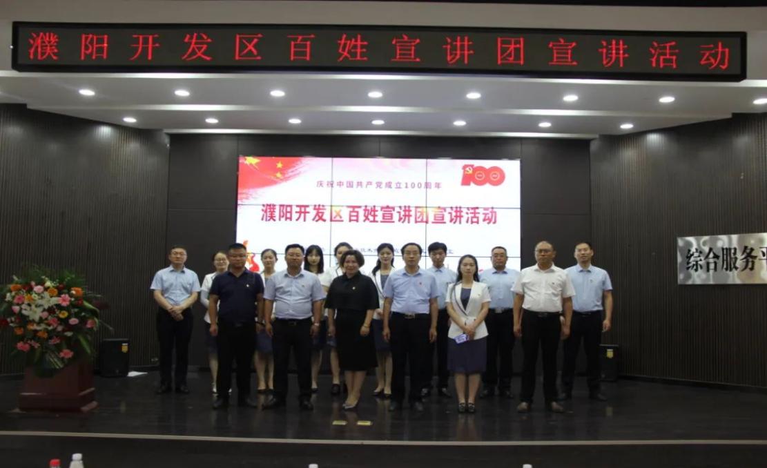 为热烈庆祝中国共产党成立100周年,全面展现党带领全国各族人民同心同德、砥砺前行所取得的辉煌成就,动员和激励广大党员干部群众进一步了解历史、爱党爱国,讴歌新时代,以新担当展现新作为,满怀信心开启全面建设社会主义现代化国家新征程。6月22日,开发区百姓宣讲团走进电商园,在电商园路演大厅举行宣讲活动。开发区党工委委员车建乐等相关部门负责人出席活动。