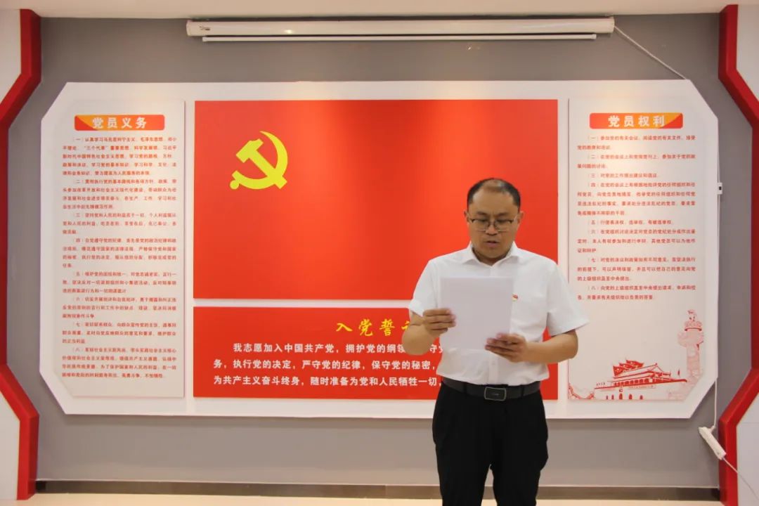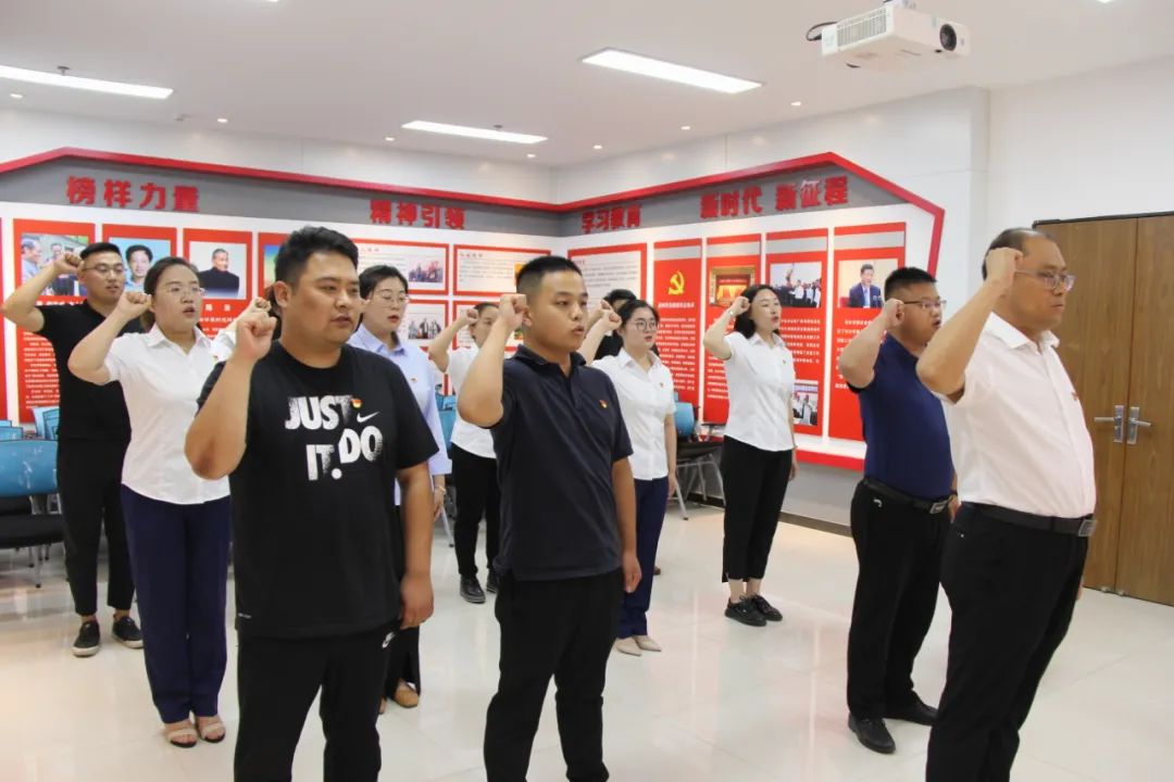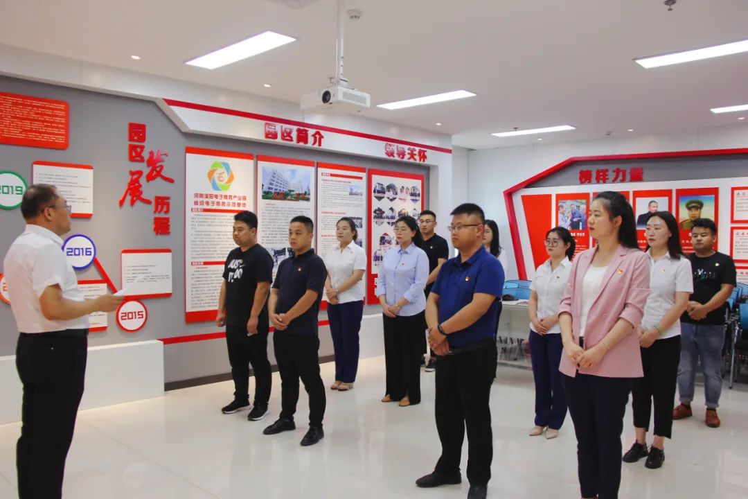 6月30日,河南濮阳电子商务产业园管理有限公司党支部组织开展重温入党誓词活动,党支部书记刘杰领誓并讲话,园区全体党员同志参加活动。