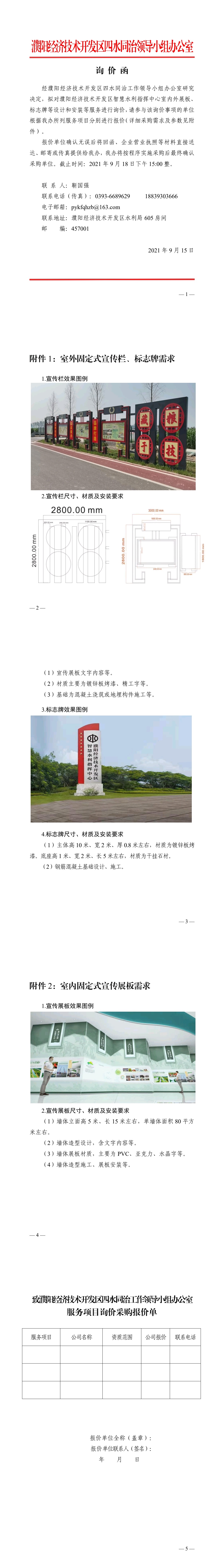濮阳经济技术开发区智慧水利指挥中心室内外设计和安装等服务询价函