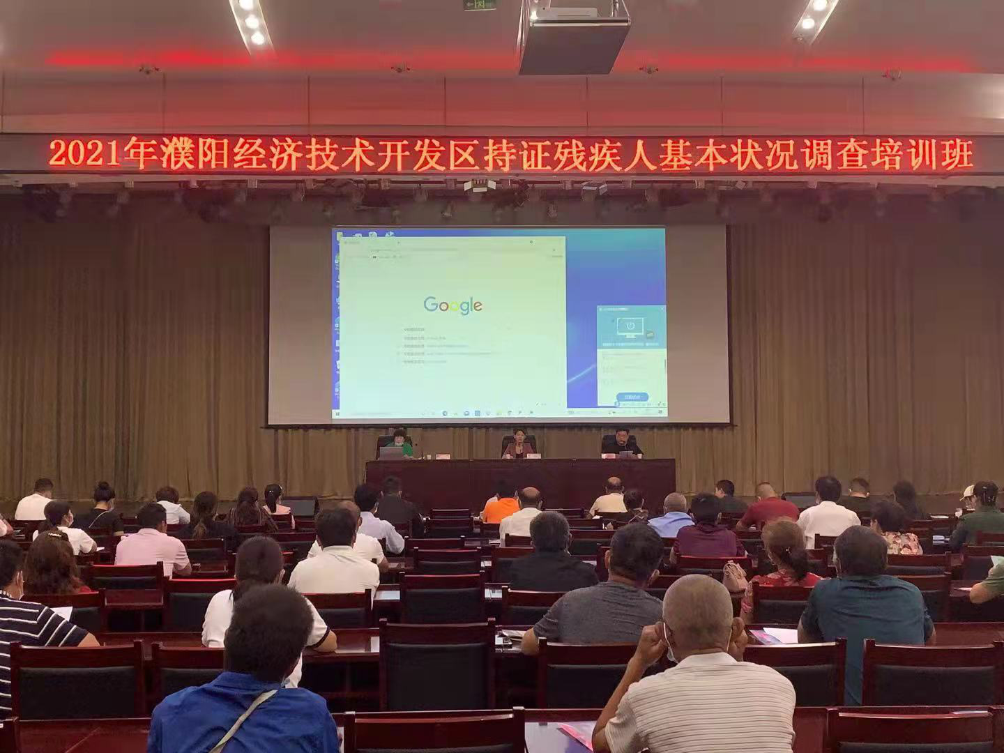 9月15日上午,开发区残联在管委会二楼会议室举办2021年度持证残疾人基本状况调查培训班,各乡镇办残联理事长、专职委员、村(社区)残协专职委员及区残联工作人员共计180余人参加了培训。