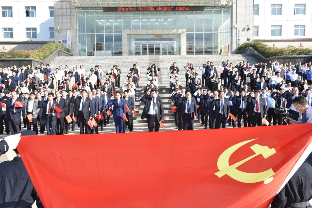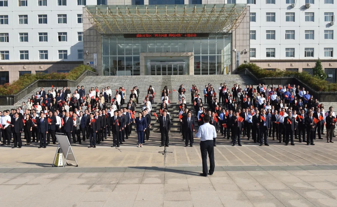 9月30日上午,开发区举行“同升国旗 同唱国歌”主题活动,热烈庆祝中华人民共和国成立72周年。全体党员重温入党誓词。区党工委副书记、管委会主任梅兴秦主持仪式,区四大班子领导、县级干部、副科级以上干部、区直单位年轻党员代表参加仪式。