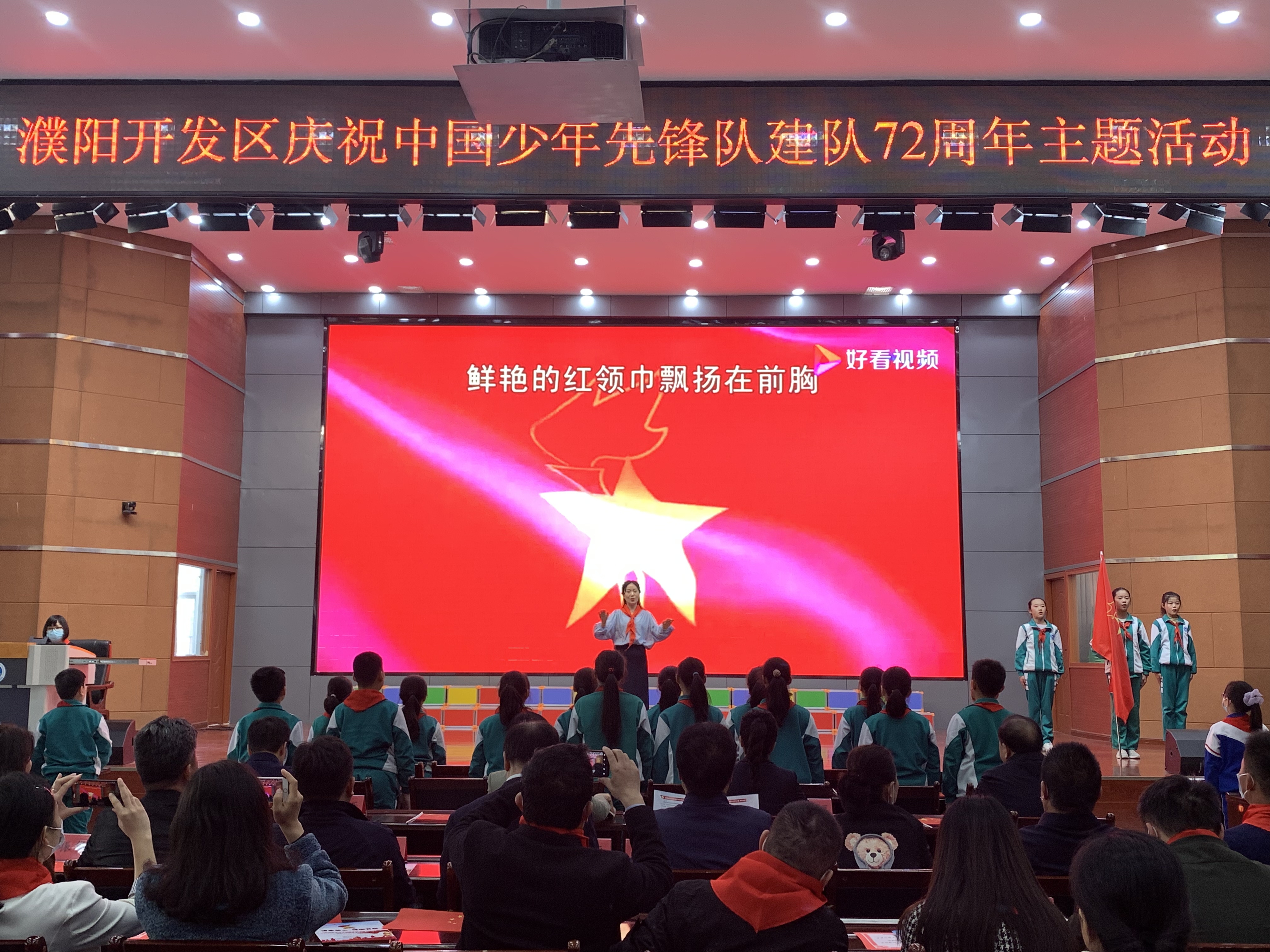 10月13日上午,濮阳经济技术开发区“请党放心 强国有我”庆祝中国少年先锋队建队72周年主题活动在开发区实验学校隆重举行。团市委书记孙丽君、区党工委副书记许俊丽、区人大工委专职副主任王培强、区党工委委员、区党工委委员车建乐出席活动。宣统办、文明办、教育局、团委主要负责同志及各乡(镇、办)分管领导、中心校分管领导、优秀少先队大队辅导员、优秀青年教师、少先队员代表、受表彰先进人员和实验学校少先队员代表300余人参加活动。