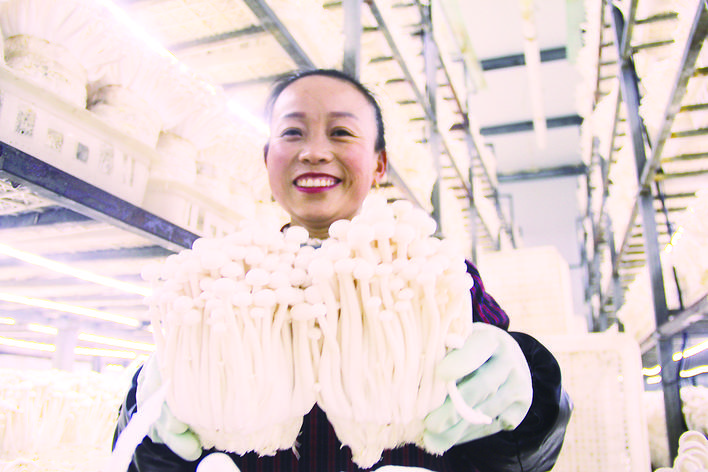 为做好巩固拓展脱贫攻坚成果与乡村振兴的有效衔接,开发区胡村乡全力服务企业发展,让群众鼓起钱袋子。图为12月1日,工人在宏林菌业海鲜菇生产基地采摘白玉菇。
