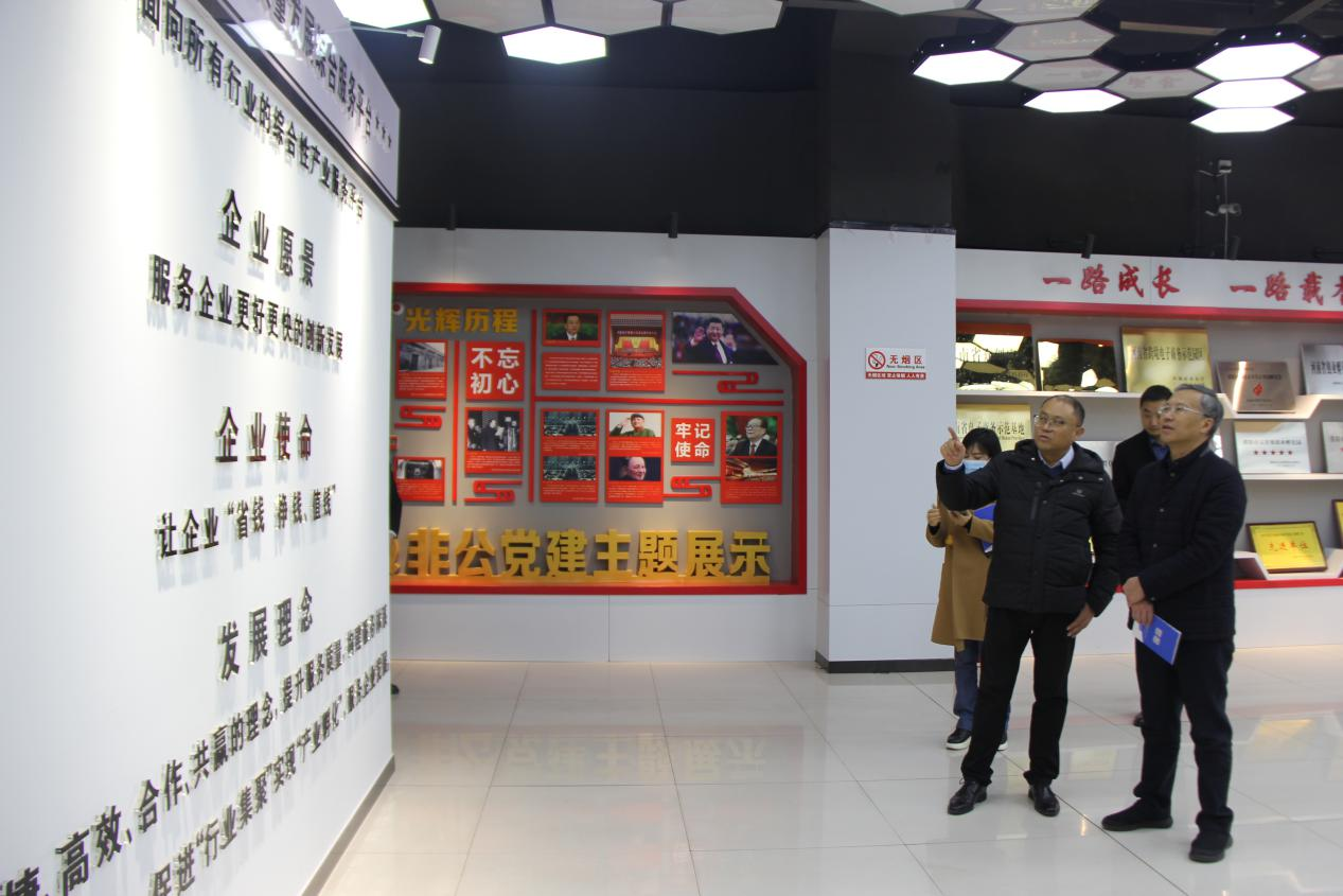 随后领导一行前往荣誉城市广场十二楼“两个健康”创新实践基地进行参观学习,电商园总经理刘杰对其相关情况进行介绍。