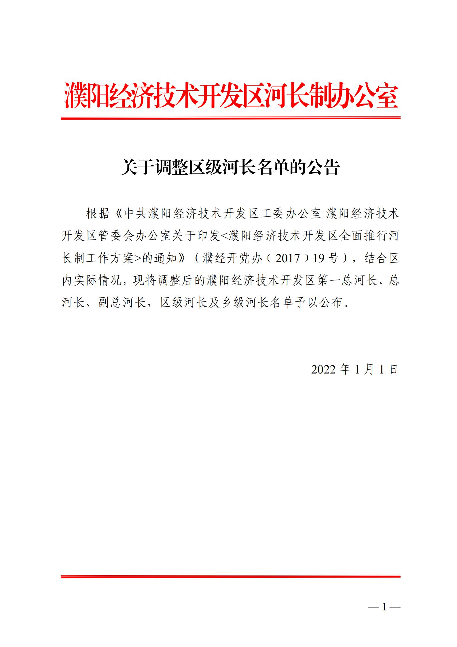 濮阳经济技术开发区河长制办公室关于调整区级河长名单的公告