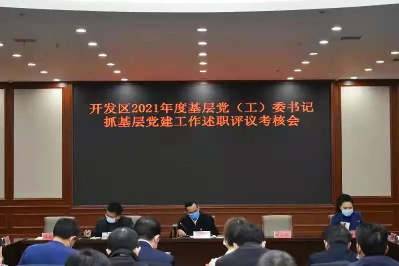 1月22日上午,开发区党工委书记孙庆伟主持召开全区2021年度基层党(工)委书记抓基层党建工作述职评议考核会议,深入贯彻党的十九届六中全会精神、习近平总书记在省部级主要领导干部专题研讨班上的讲话精神和习近平总书记关于全面从严治党的重要论述。听取各乡(镇、办)党(工)委书记、区机关党委专职副书记现场述职,其他基层党委书记进行书面述职,并对各乡(镇、办)和区机关党委抓基层党建情况进行了逐个点评。区领导梅兴秦、许俊丽、冯庆轩、王伯华、王宏耀、李文旻、武国体、车建乐参加会议。市委组织部杨成磊同志到会指导。