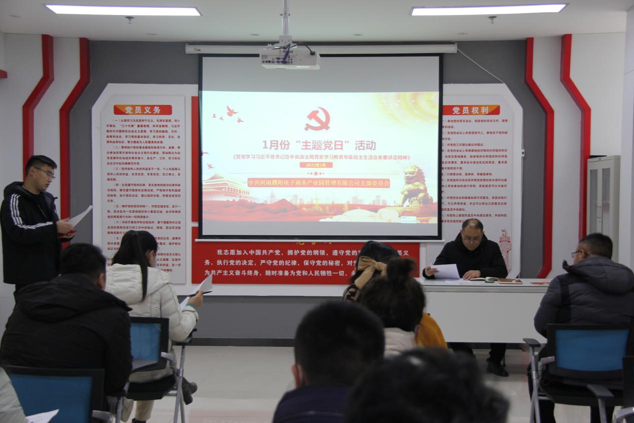 1月27日,河南濮阳电子商务产业园管理有限公司党支部组织召开党员大会暨1月份“主题党日”,党支部书记刘杰主持会议,园区党员同志参加会议。