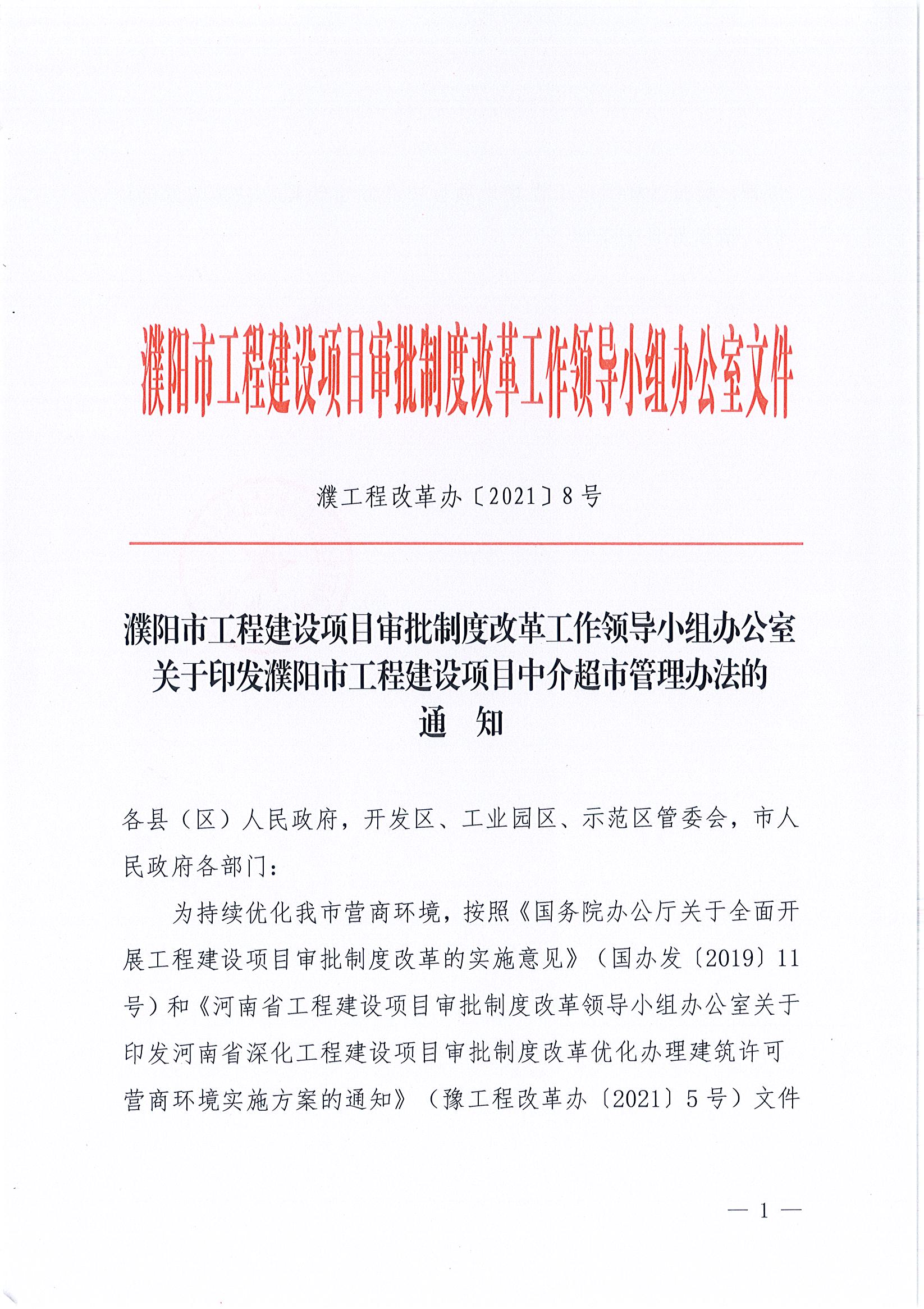 濮阳市工程建设项目审批制度改革工作领导小组办公室关于印发濮阳市工程建设项目中介超市管理办法的通知