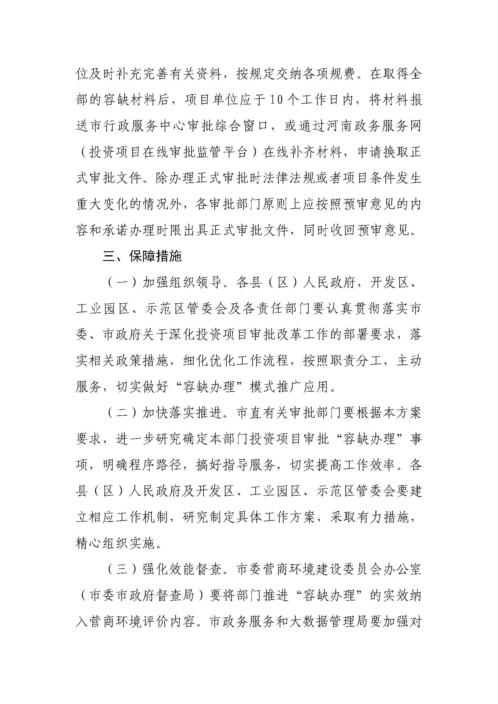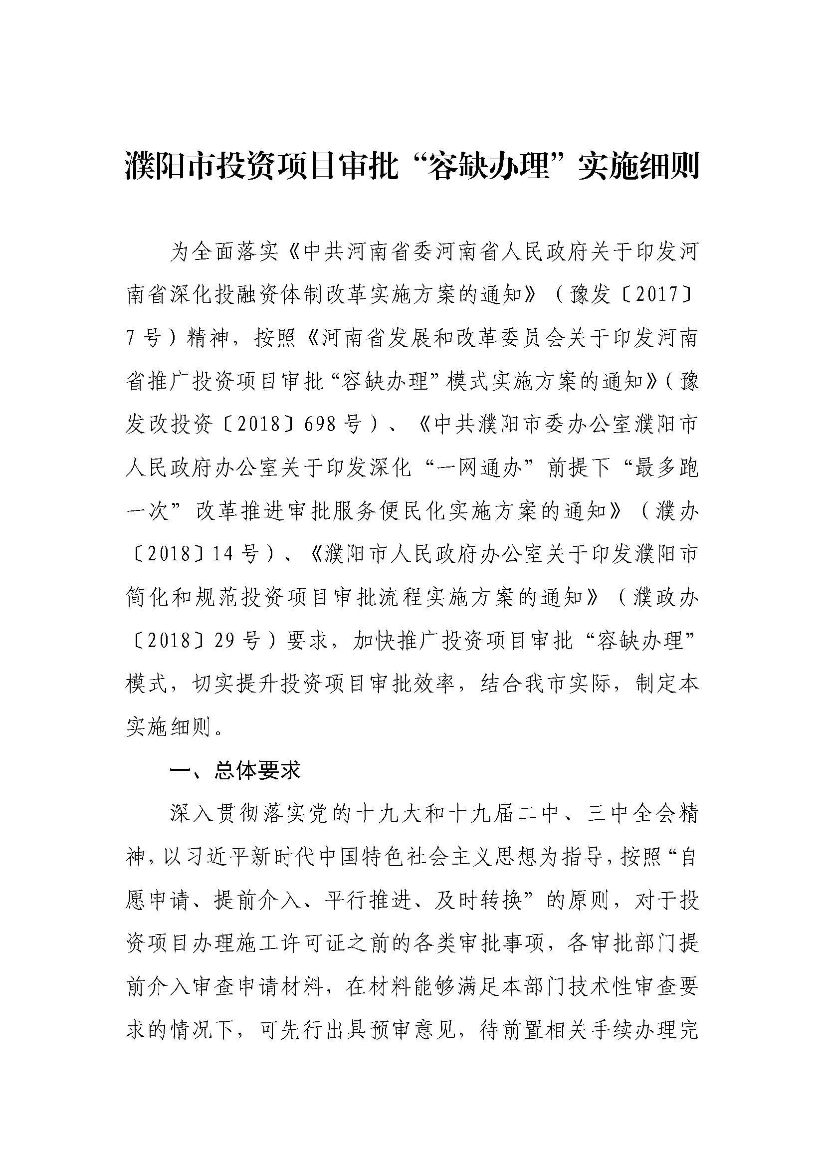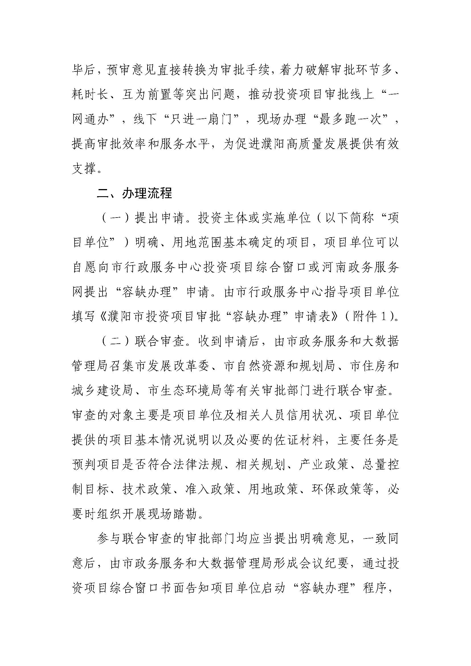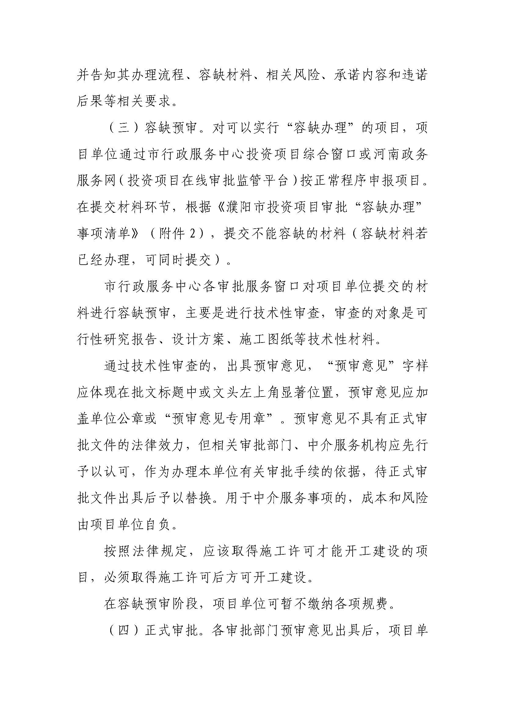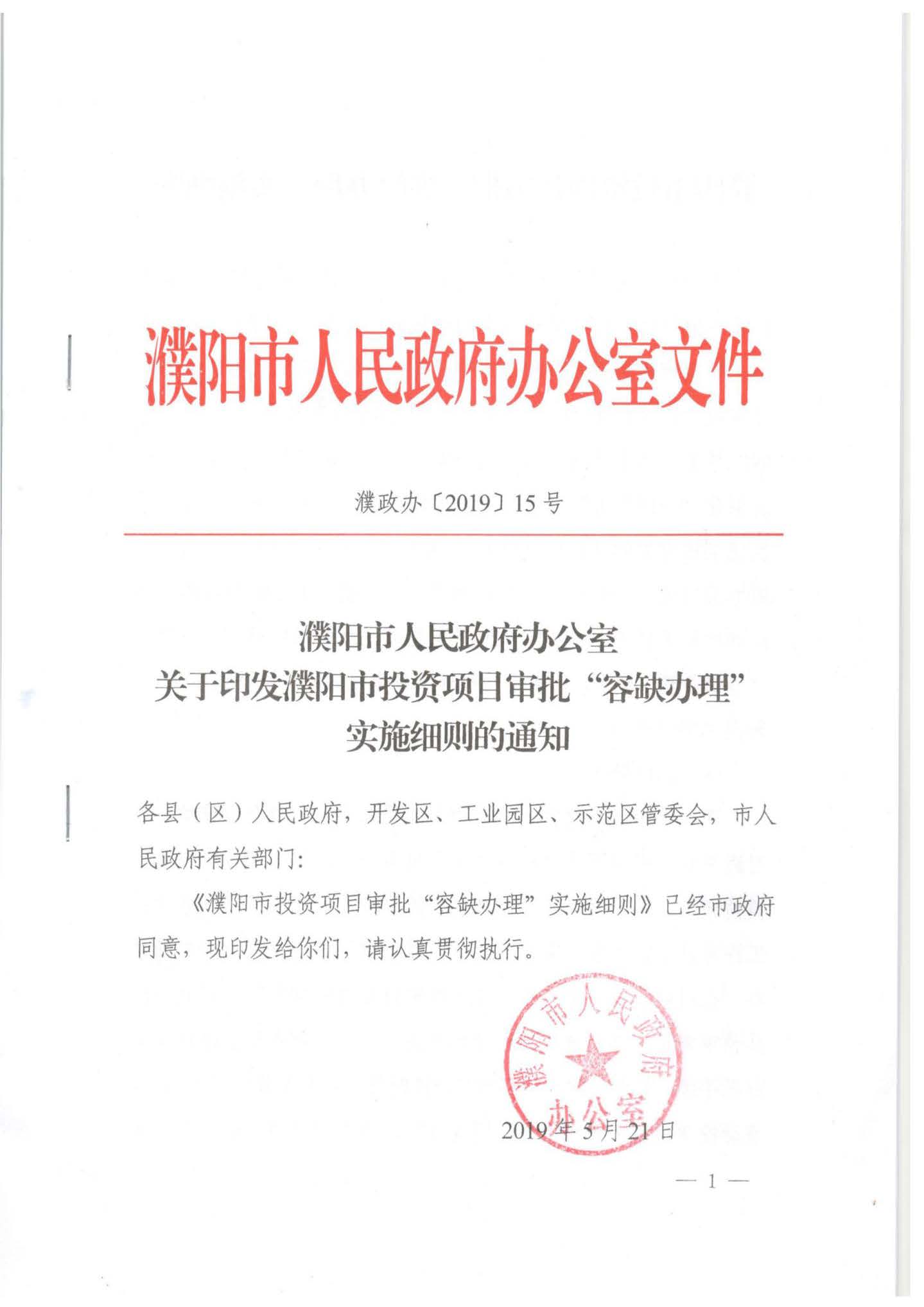 濮阳市人民政府办公室关于印发濮阳市投资项目审批“容缺办理”实施细则的通知