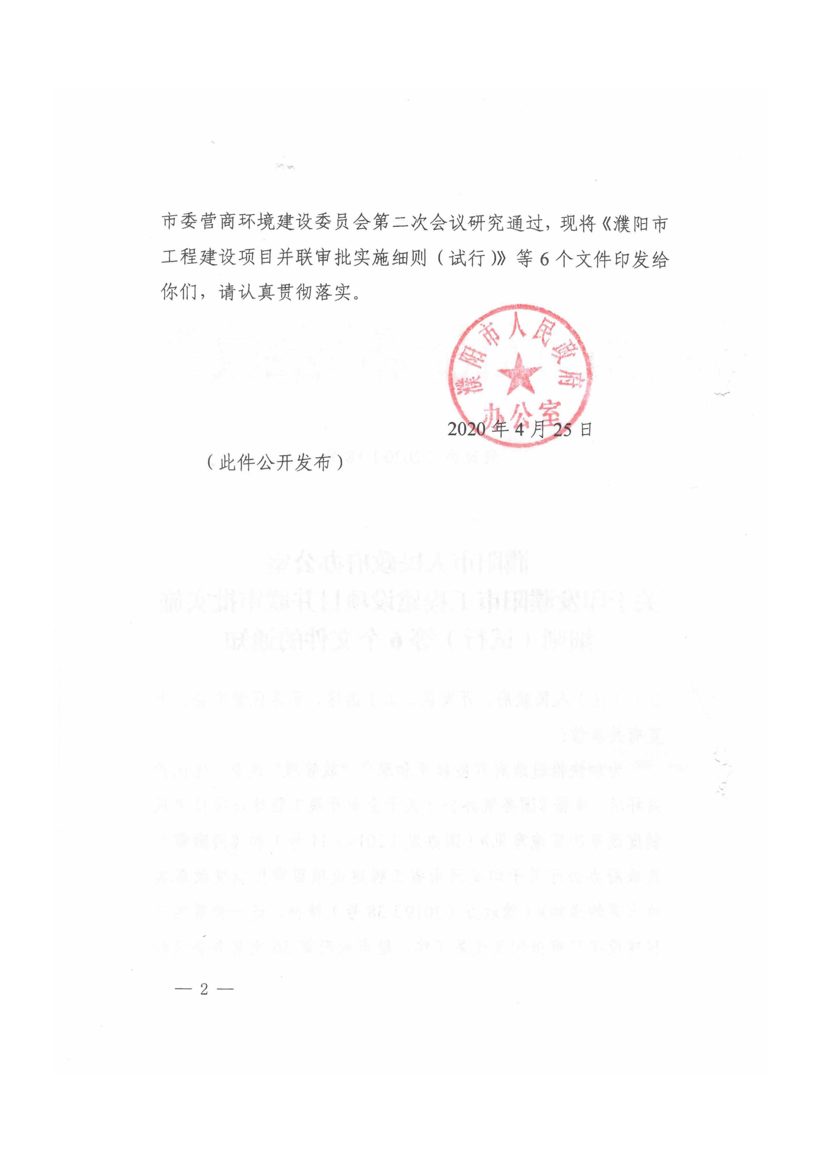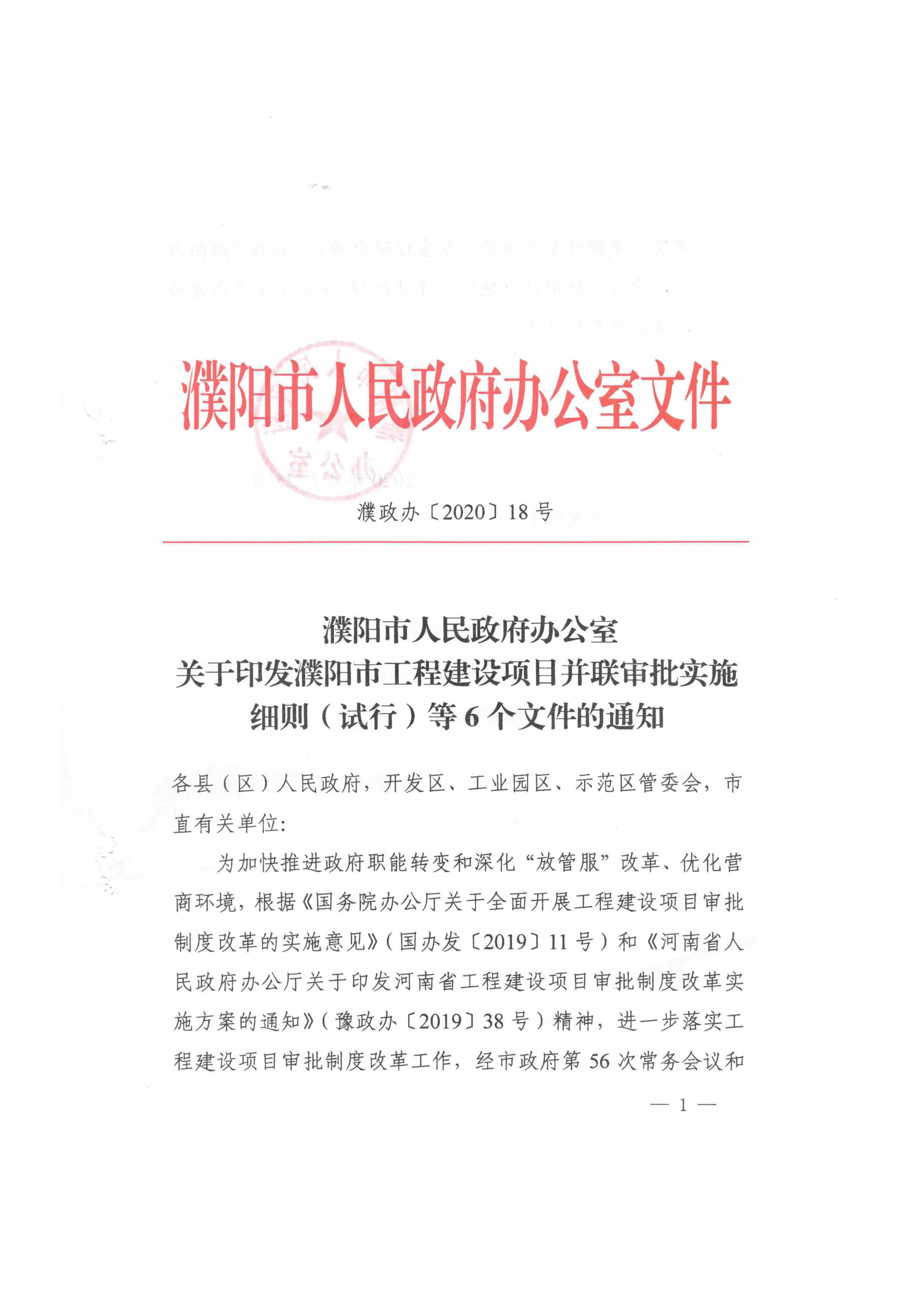 濮阳市人民政府办公室关于印发濮阳市工程建设项目并联审批实施细则(试行)等6个文件的通知