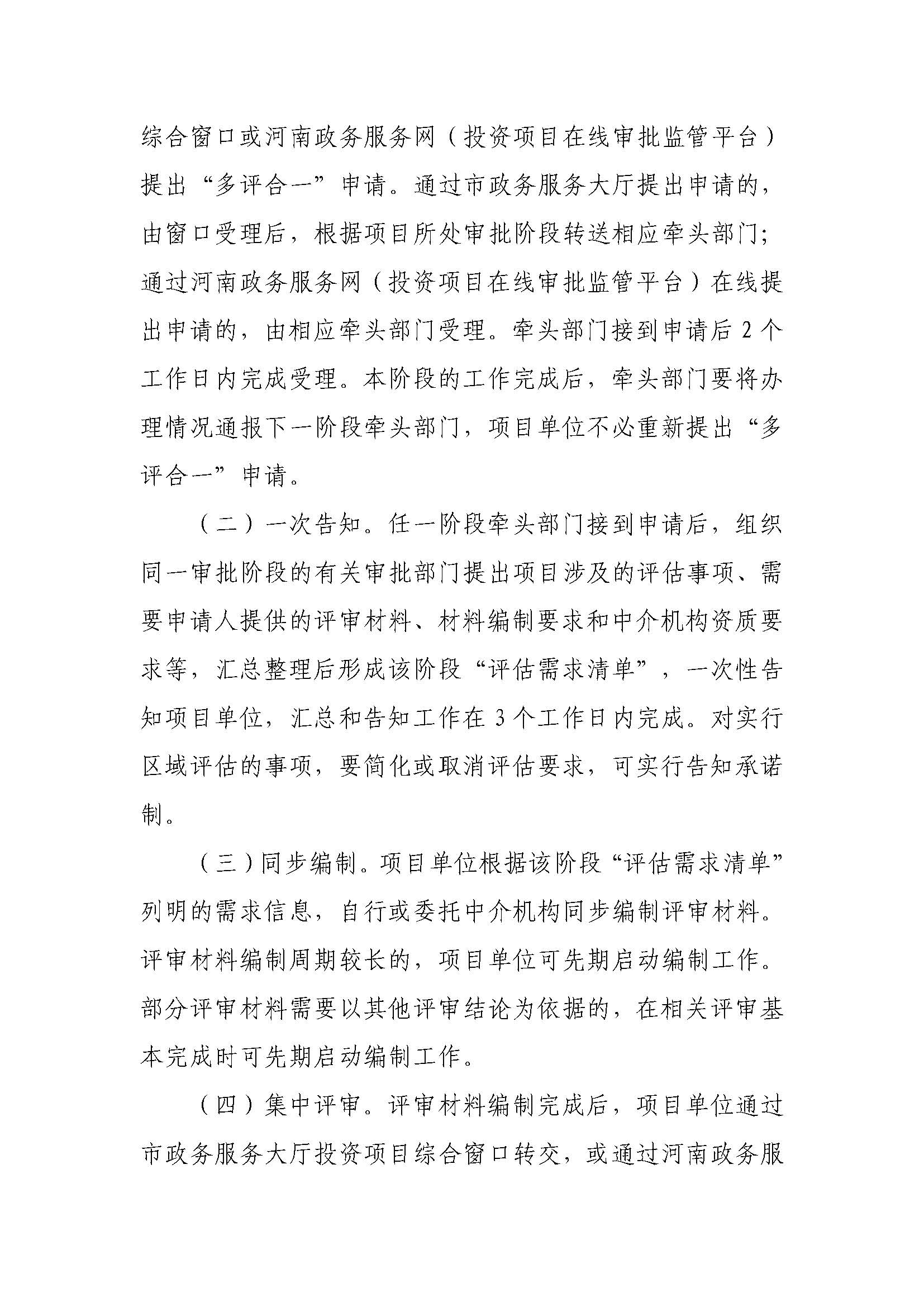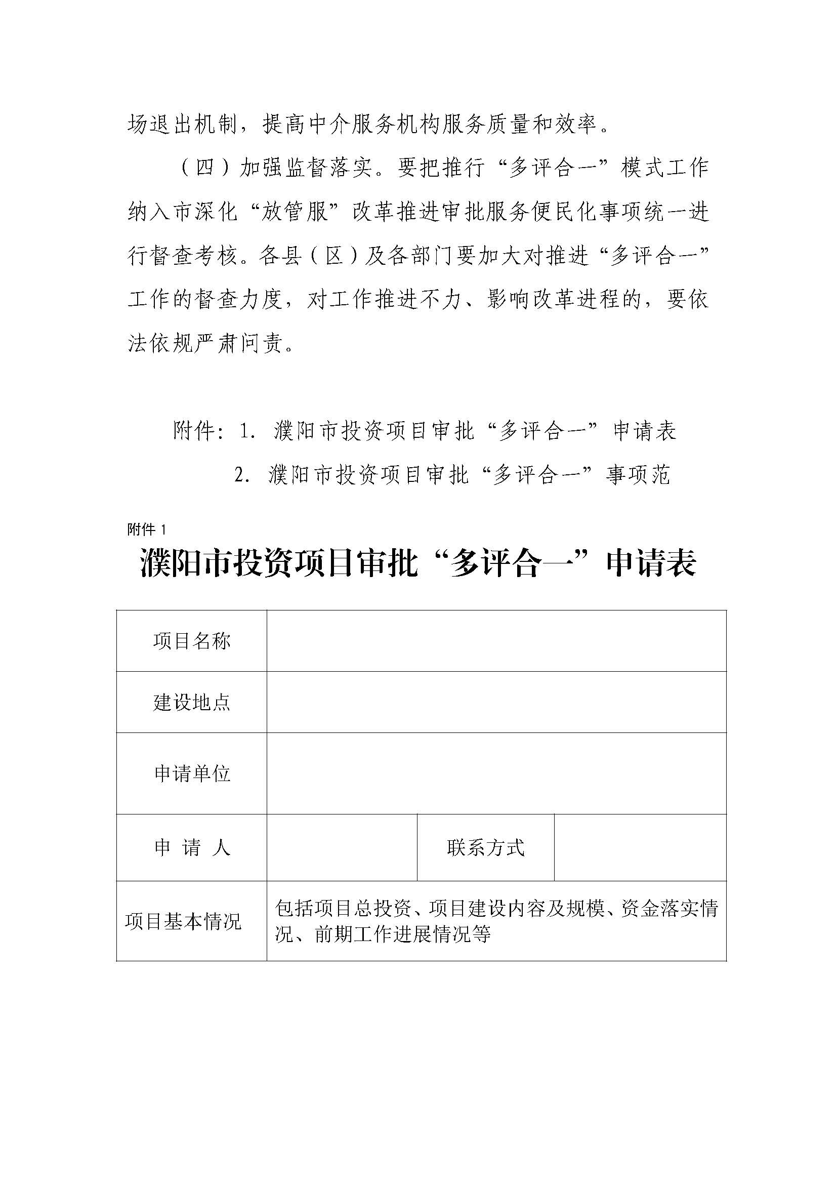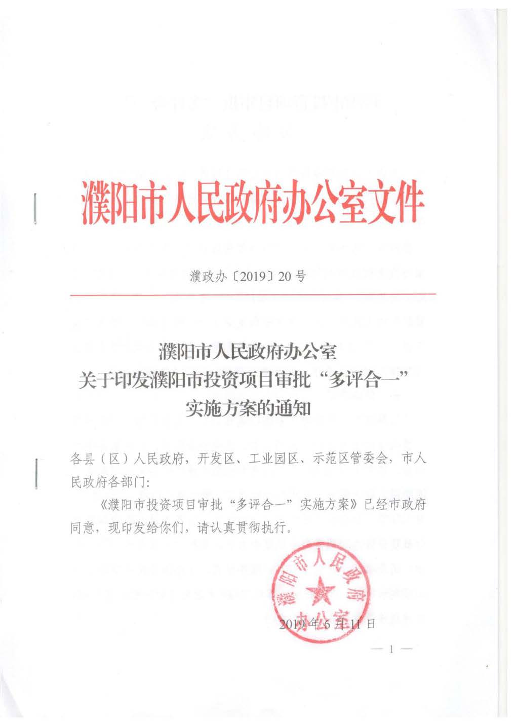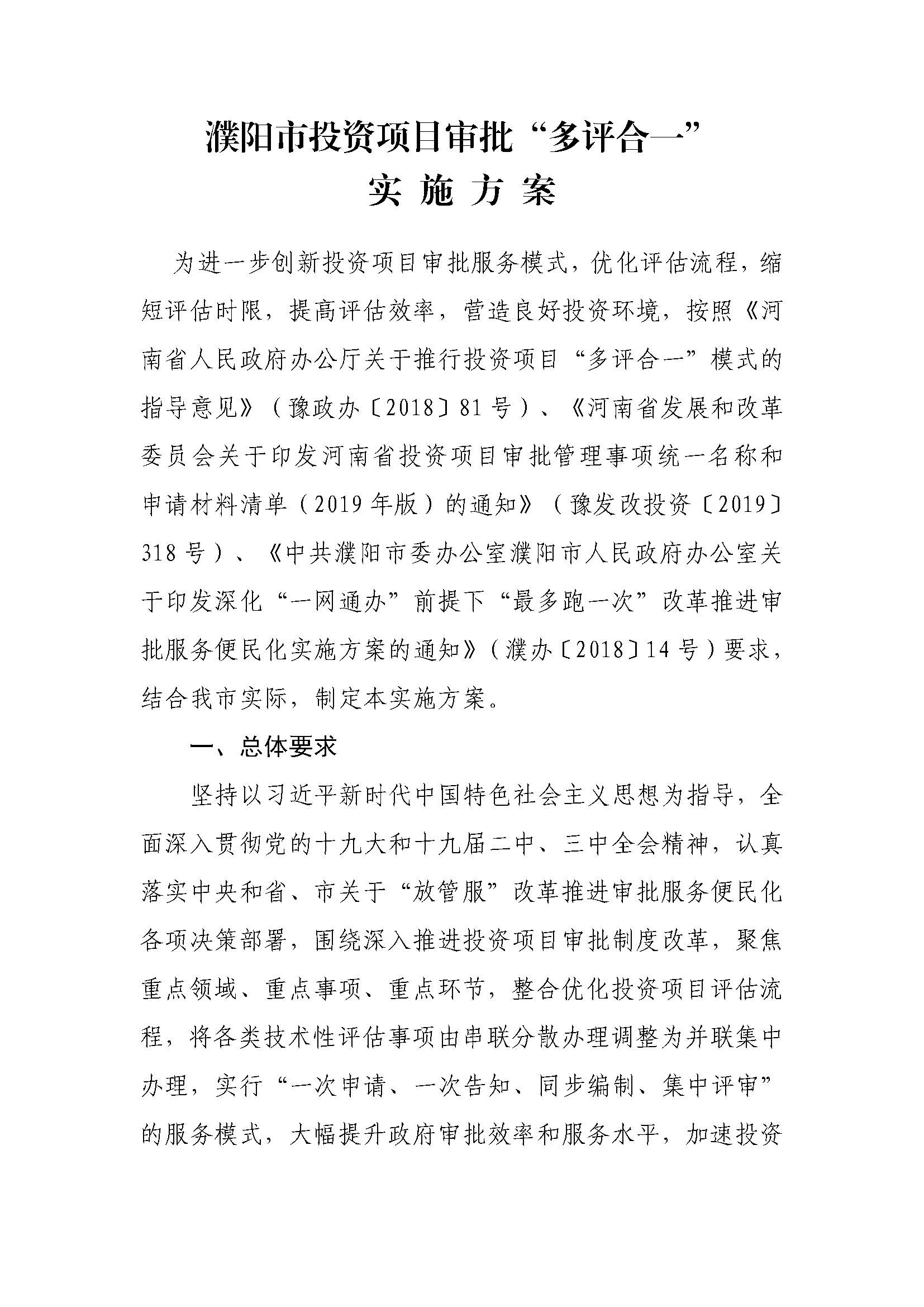 濮阳市人民政府办公室关于印发濮阳市投资项目审批“多评合一”实施方案的通知
