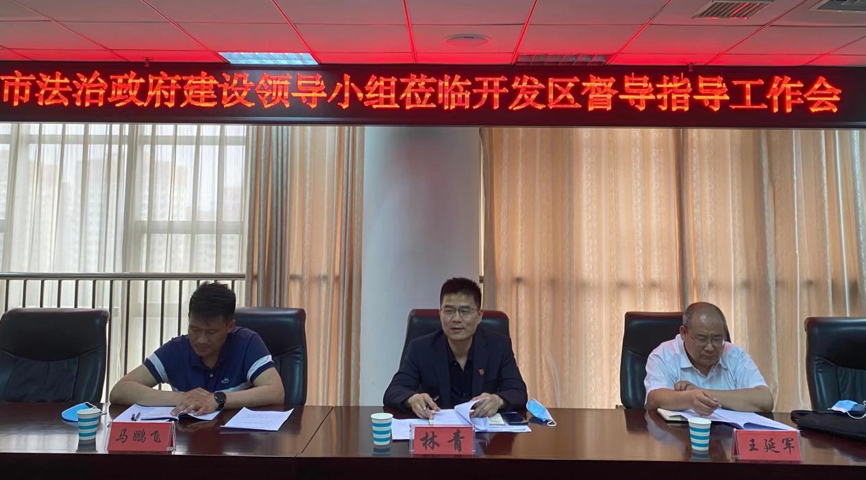 4月11日,市司法局副局长林青率领市法治政府建设领导小组督导组一行三人,莅临开发区督导检查创建全国法治政府建设示范市迎检工作开展情况。区党工委委员武国体、社会事业局副局长梁吉高及相关科室负责人参加汇报会。