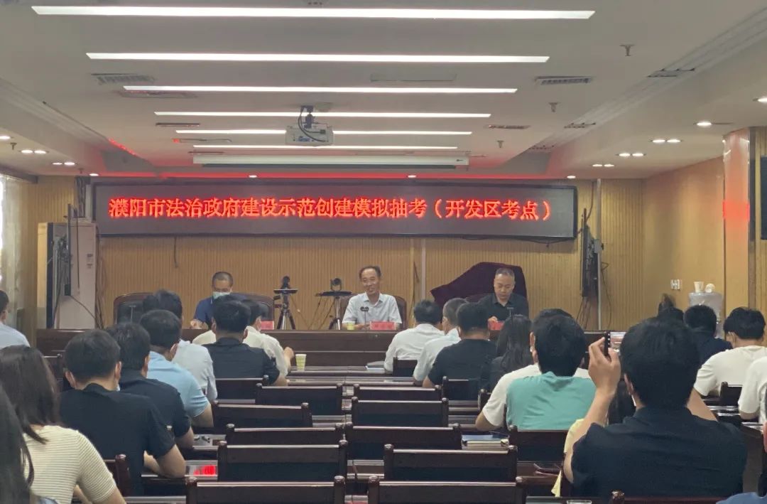 5月31日下午,市司法局二级调研员尹济国率市法治政府建设领导小组办公室一行到濮阳经济技术开发区开展法治政府建设能力知识测试,现场反馈测试结果,对取得成绩予以肯定。我区2020年以来新提拔重用的副科级以上领导干部、初任公务员及持行政执法证人员共30余人参加。