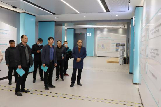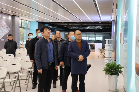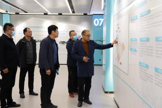 工作组一行先后实地参观了龙都智慧岛展厅、园区特色产品展览馆,电商园总经理刘杰就龙都智慧岛项目运营模式、创新金融体系、科技成果转化、企业孵化培育等方面情况进行详细汇报。