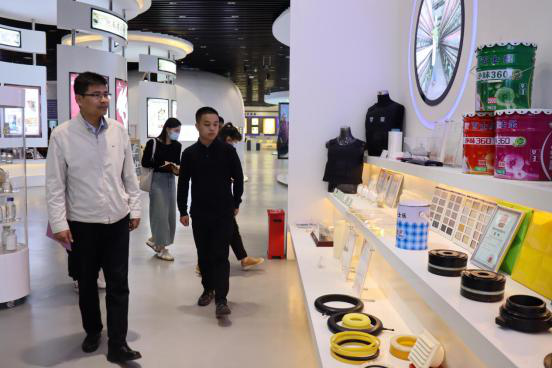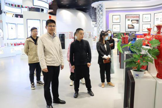 领导一行实地参观了园区特色产品展览馆,了解了濮阳市五县二区的特色产品和非物质文化以及濮阳进出口企业的产品情况。