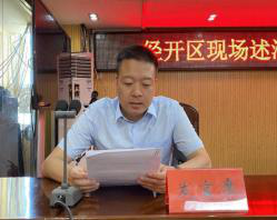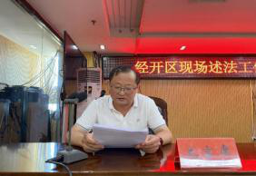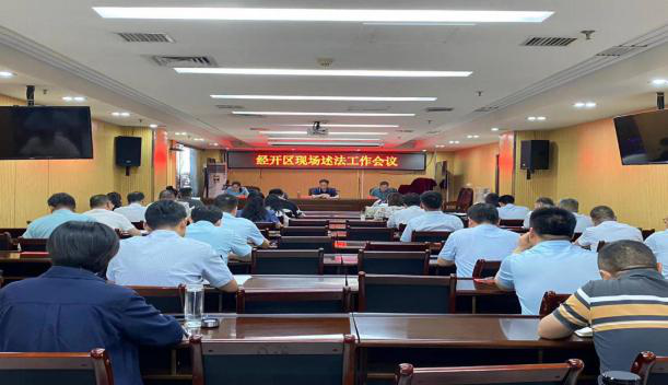 6月30日,经开区召开现场述法工作会议。区党工委副书记、管委会主任梅兴秦出席会议并做重要讲话,会议由区党工委委员、依法治区委员会办公室主任武国体主持,各乡(镇、办)、区直各单位主要负责同志参加会议。