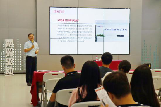 大会进行第三阶段,邀请知名律师石旭升作关于企业管理和技术人员的法务培训,从“销售合同、用工自主权、劳动合同、工伤认定”等方面,与区新联会各位会员进行法律风险交流。