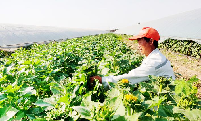 近年来,经开区王助镇不断调整优化产业结构,因势利导,因地制宜,发展向日葵花卉种植,成了农民增收致富的新渠道。目前,该镇种植向日葵花卉300亩,年收入近500万元。图为7月11日,王助镇乜村花农正在采摘向日葵。本报记者 黄立 通讯员 刘涛 刘启峰 摄