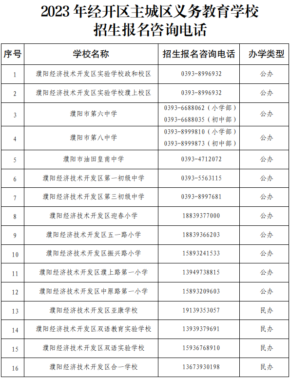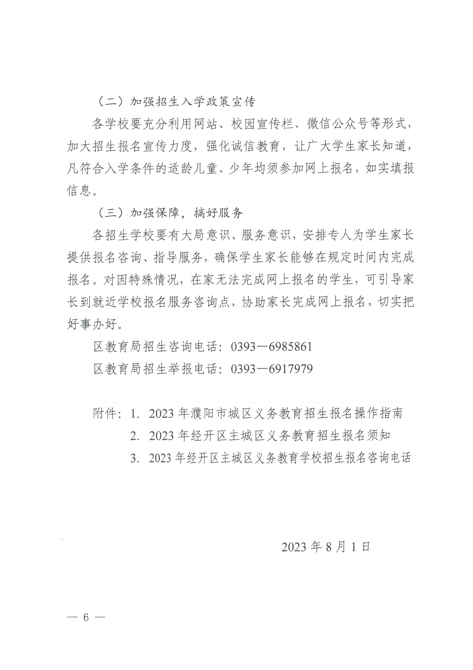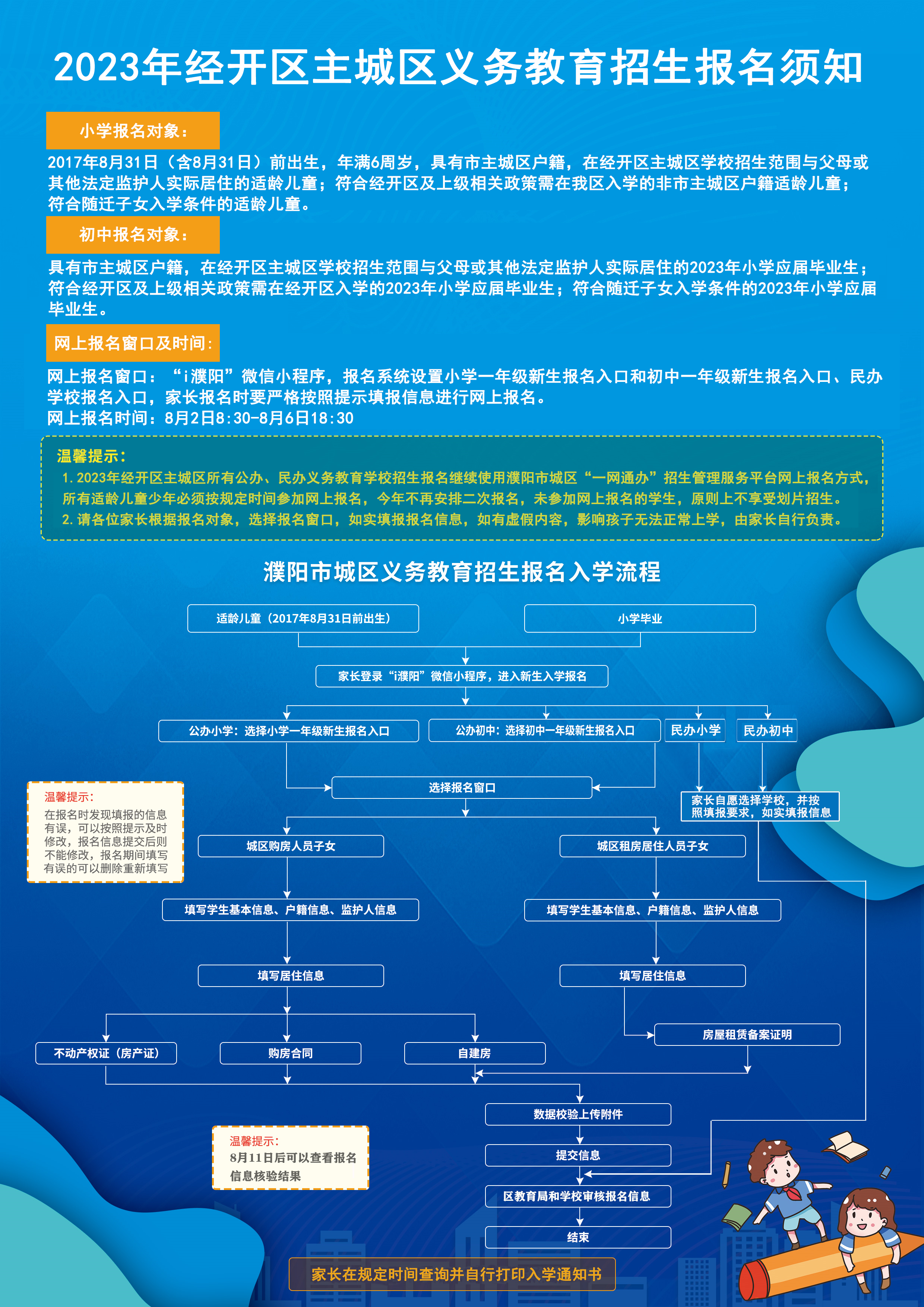 濮阳经济技术开发区教育局关于2023年经开区主城区义务教育学校招生报名事项的通知