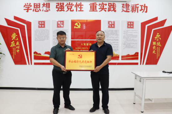 濮阳市市场监管局开发区分局副局长王新峰为电商园党支部进行授牌
