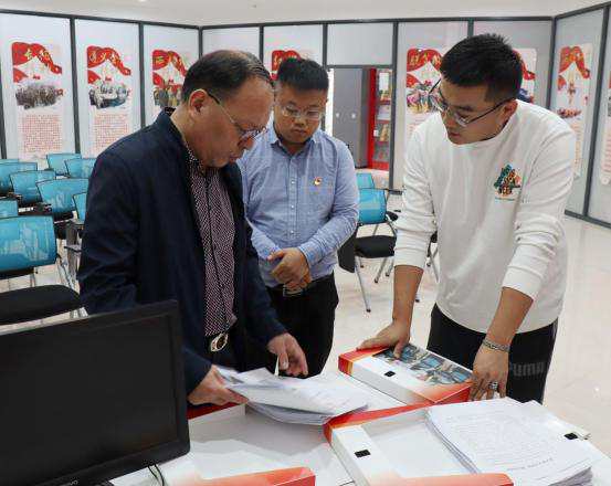 巡察组一行实地参观了园区党建活动阵地,电商园副总经理宋钢豹就园区发展历程、党建阵地的功能布局、党员队伍建设、党组织活动开展、党员经费管理等情况进行详细汇报。